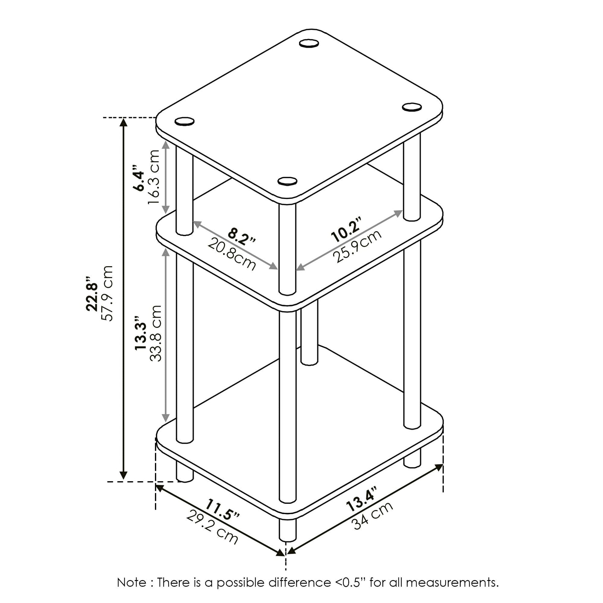 Just 3-Tier Turn-N-Tube End Table Side Table Night Stand Bedside Table with Plastic Poles, 1-Pack, Columbia Walnut/Black