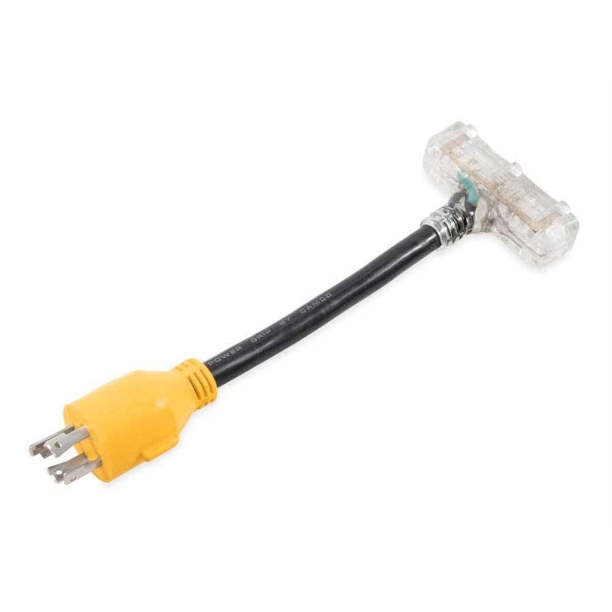 Crafted with durability in mind, this 12-inch adapter features a heavy-duty flame-resistant and heat-resilient PVC sheath, ensuring it withstands the rigors of outdoor environments while protecting against wear and tear. The adapter is equipped with a secure 30-amp locking male connector (NEMA L14-30P) that guarantees a reliable connection, while the three 15-amp female outlets (NEMA 5-15R) provide versatile power options for your devices.