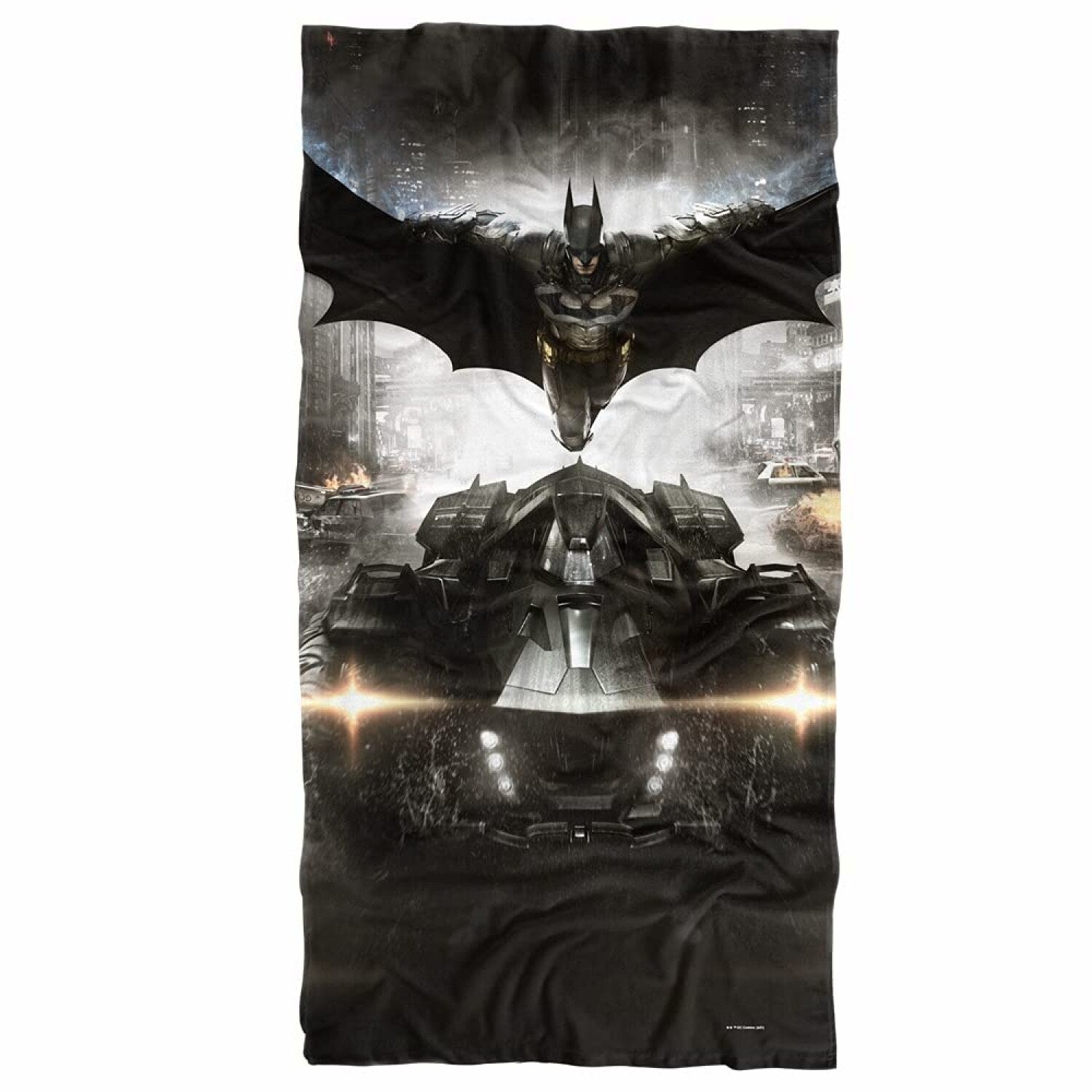 This officially licensed beach towel features a striking Arkham Knight poster design, measuring 30" by 60". Crafted for fans and beachgoers alike, it offers a vibrant display of the Arkham Knight artwork. The towel's size provides ample coverage for lounging or drying off after a swim. Made from quality materials, it ensures durability and comfort during use. Its eye-catching design makes it a perfect accessory for the beach, pool, or any outdoor activity. The bold imagery captures the essence of the Arkham Knight theme, adding a touch of fandom to your outdoor essentials. Whether you're relaxing by the water or enjoying a day outdoors, this towel combines functionality with a striking visual appeal. Its lightweight and easy-to-carry design make it convenient for travel and outdoor adventures. Elevate your beach experience with this officially licensed Arkham Knight poster beach towel, combining style and practicality in one vibrant accessory.
