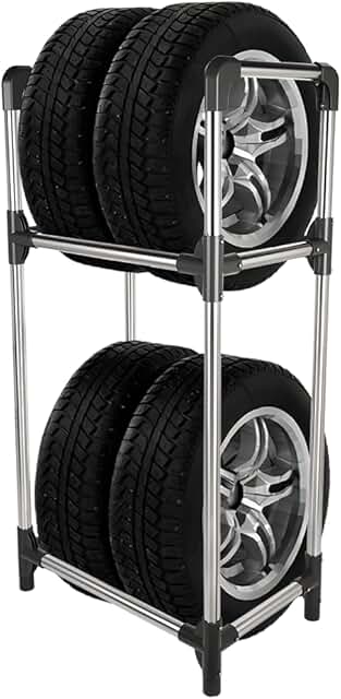 The Hershii Tire Storage Rack is a versatile standing garage storage shelf designed for indoor and outdoor use. Its durable construction features a black and silver finish, providing a sleek and functional storage solution. The rack measures approximately 22.51 inches in width, 14.16 inches in depth, and 45.11 inches in height, offering ample space for organizing tires and other garage items. The sturdy design ensures stability and support for heavy loads, making it suitable for various storage needs. Its open shelving allows for easy access and visibility of stored items, helping to maximize space efficiency. The compact footprint makes it ideal for garages, workshops, or outdoor storage areas, keeping tires and tools organized and accessible. The rackβs durable materials withstand outdoor conditions, ensuring long-lasting performance. Overall, this storage shelf provides a practical and reliable solution for maintaining an organized and clutter-free environment.