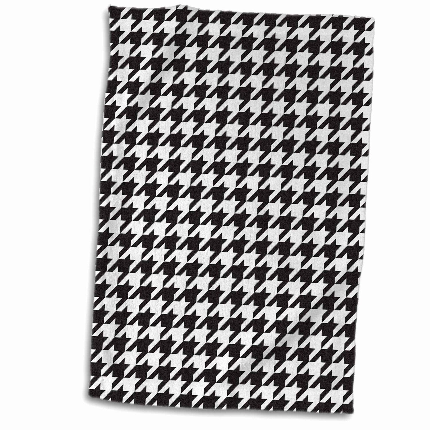 This black and white houndstooth pattern hand/sports towel measures 15 x 22 inches, making it versatile for use in the kitchen, bathroom, or gym. Crafted from a blend of 63% polyester microfiber and 37% cotton velour terry cloth, it offers durability and softness. The towel features an image printed on the microfiber side, with the terry cloth side remaining blank. It is ideal for drying dishes, hands, and faces, and is suitable for carrying in sports bags. The design is resistant to fading after washing, ensuring long-lasting appearance. It is machine washable, tumble dry low, and should not be bleached. The towel will regain its fullness after the first wash, maintaining its quality and functionality over time. Its stylish pattern adds a touch of preppy elegance to any setting, combining practicality with a classic design.