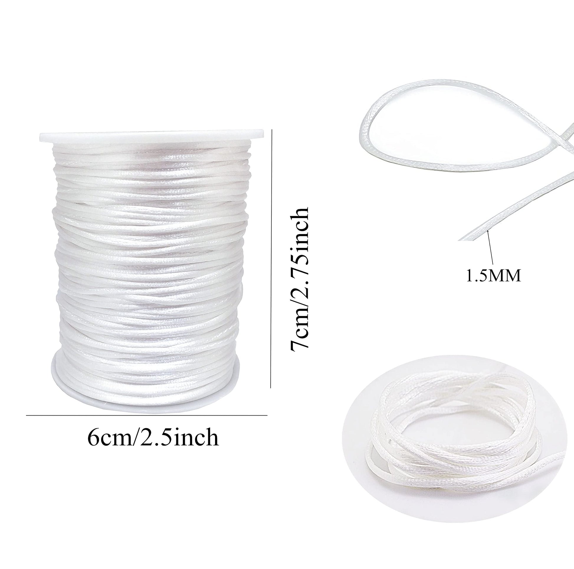 This soft, durable rat tail cord is made from smooth nylon with vibrant colors, suitable for various DIY projects. Each roll measures approximately 88 yards (263 feet) with a diameter of about 1.5mm, making it ideal for macrame knotting, Kumihimo jewelry, and beading with beads that have holes larger than 1.5mm. The cords come on plastic spools, preventing tangles and ensuring easy handling during crafting. Perfect for creating lanyards, building Tels, sewing drawstring bags, wrapping bottles, weaving dream catchers, and braiding hair. They can also be used as ribbon cords for scrapbooking, tying favors, decorating party accessories, and making ornaments. Versatile in application, this nylon cord is suitable for Kumihimo, micro macramΓ©, Chinese knotting, braiding, trims, fine laces, bridal veils, wedding favors, ties, and shoelaces. Its durability and vibrant colors meet a wide range of creative needs.