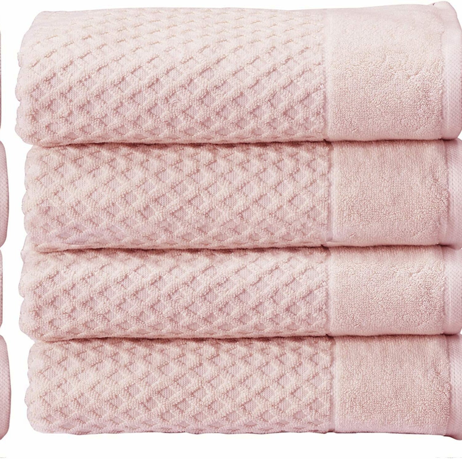 This set includes four pink bath towels, each measuring 27 inches by 54 inches. Made from 100% cotton, these towels offer a soft and absorbent feel, ideal for everyday use. The plush fabric provides a comfortable experience, while the generous size ensures full coverage and effective drying. The vibrant pink color adds a cheerful touch to any bathroom decor. Designed for durability, these towels maintain their softness and color after multiple washes. Perfect for personal use or as a thoughtful gift, this four-pack offers a practical and stylish addition to your bathroom essentials. The towels are easy to care for, making them a convenient choice for regular use. Whether for drying off after a shower or bath, these towels combine comfort, functionality, and a bright pop of color to enhance your daily routine.