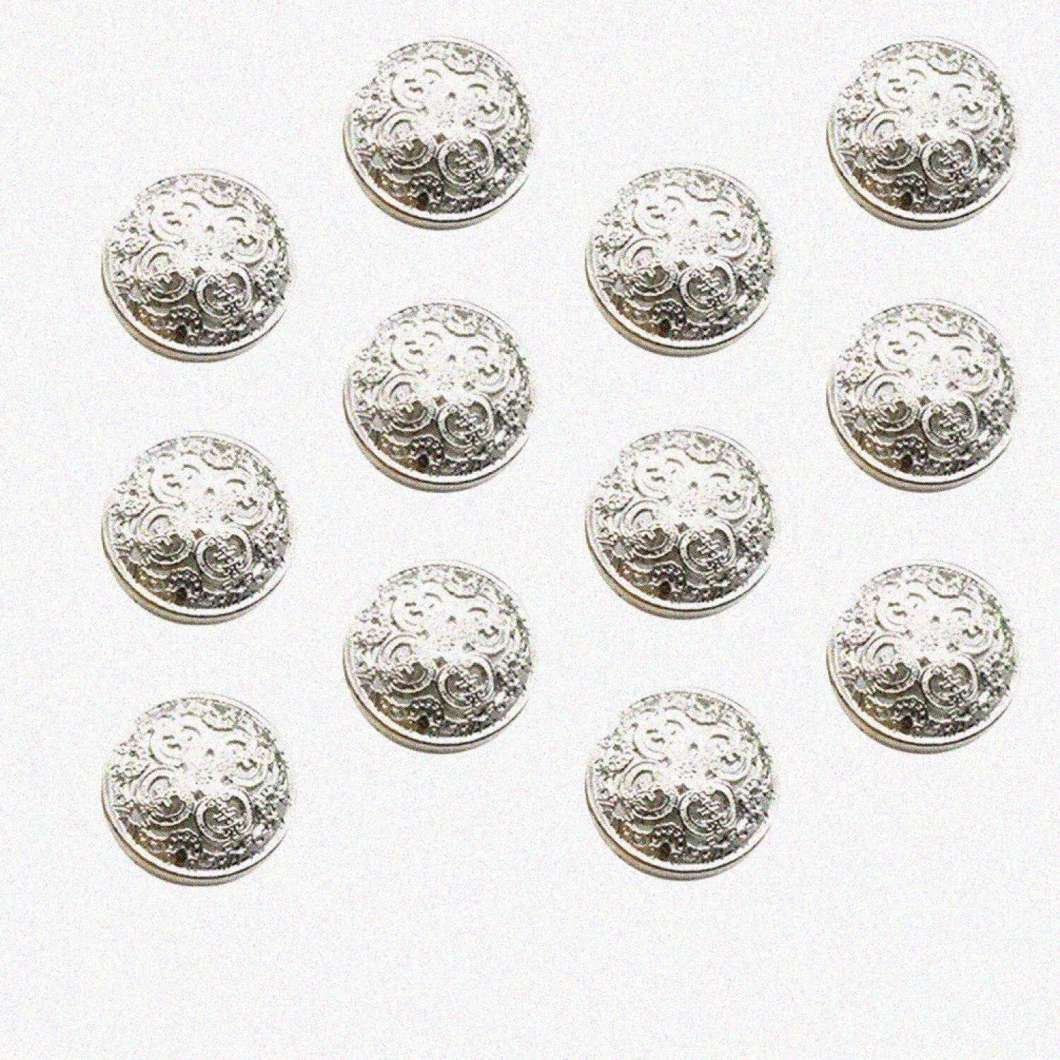 SilverCraft 30-piece set of hollow round metal buttons in various sizes and colors. The buttons come in light golden, black, silver, and rose golden shades. Sizes include 1.8 x 1.8 x 0.5 cm, 2 x 2 x 0.5 cm, 2.3 x 2.3 x 0.5 cm, and 2.5 x 2.5 x 0.5 cm. Made from durable metal, these buttons are suitable for a wide range of sewing and craft projects. They are ideal for clothing such as jackets, coats, trousers, T-shirts, windbreakers, and jeans. Additionally, they can be used on hats, shoes, backpacks, leather items, and DIY manual projects. The package includes 30 buttons, providing versatile options for various creative and functional applications. Their hollow round design adds a stylish touch to any garment or craft project, making them a practical choice for sewing enthusiasts and DIY crafters alike.