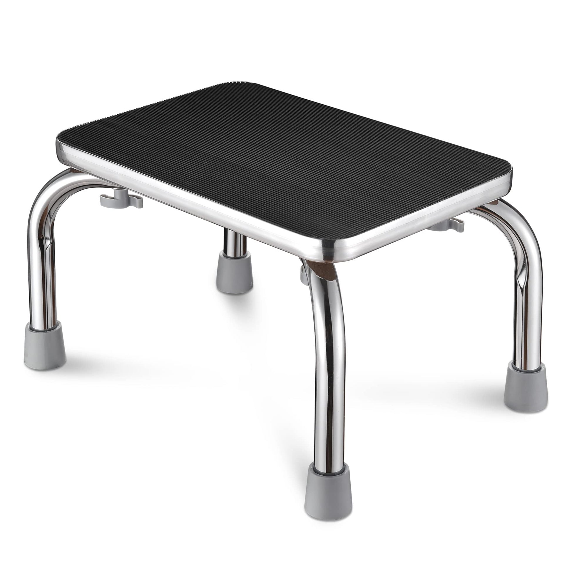 Features:- Strong Metal Construction: 16 1/8" x 11 5/8" x 9 1/4" step stool is made of heavy-duty steel for providing durability and sturdiness, legs of 16-gauge for adding stability and supporting a heavy weight up to 500 s, ideal for getting in and out of bath, bed and car- Non-skid Safe: Non-skid textured rubber surface for preventing pery and adding using safety; reinforced rubber feet not only for resistance, but also for reducing noise and protecting your floor from scratches, suitable for using in bedroom and bathroom- Durable Easy to Use: Smooth chromed-plated metal frame for ensuring rust-resistance and long life, easy to be cleaned and maintained; easy to emble, no need to use extra tools, just connect all parts together- Portable Design: Compact size and light weight for providing portability and convenience when using, can be carried to anywhere you need at home with ease- Multifunctional Usages: Widely used for household applications, helping children, adults and elderly people to reach high-shelved items, clean windows and cabinets, etc; also beneficial for people with disabilities and the patients at hospitalsSpecifications:- Overall Dimension(LxWxH): 16 1/8" x 11 5/8" x 9 1/4" 41 x 29.5 x 23.5 cm))- Stool Platform Size(LxWxH): 14 3/16" x 9 3/4" x 13/16" 36 x 24.8 x 2 cm)- Leg Diameter: 1 2.5 cm)- ness of Leg Tube: 1/16 0.12 cm)- Metal, Rubber, Wood- Weight Capacity: 500 s 226.8 kg)- Net Weight: 4.4 s 2 kgPackage Contents:- 1x Footstool- 1 Set of Accessories- 1x User Manual