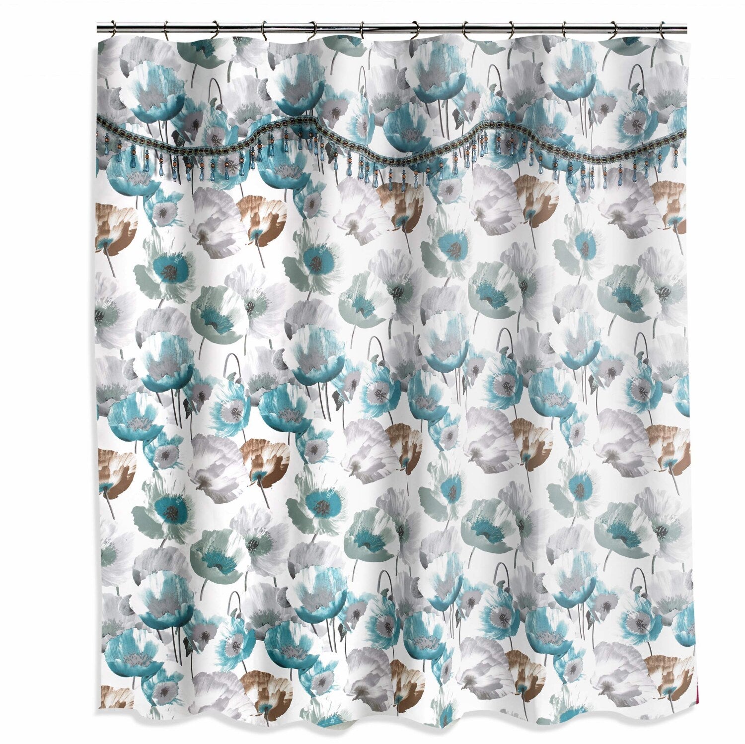 Poppy Fields Shower Curtain Aqua