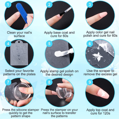 • Apply polish on nail stamp plate (Not included and Sold Separately).