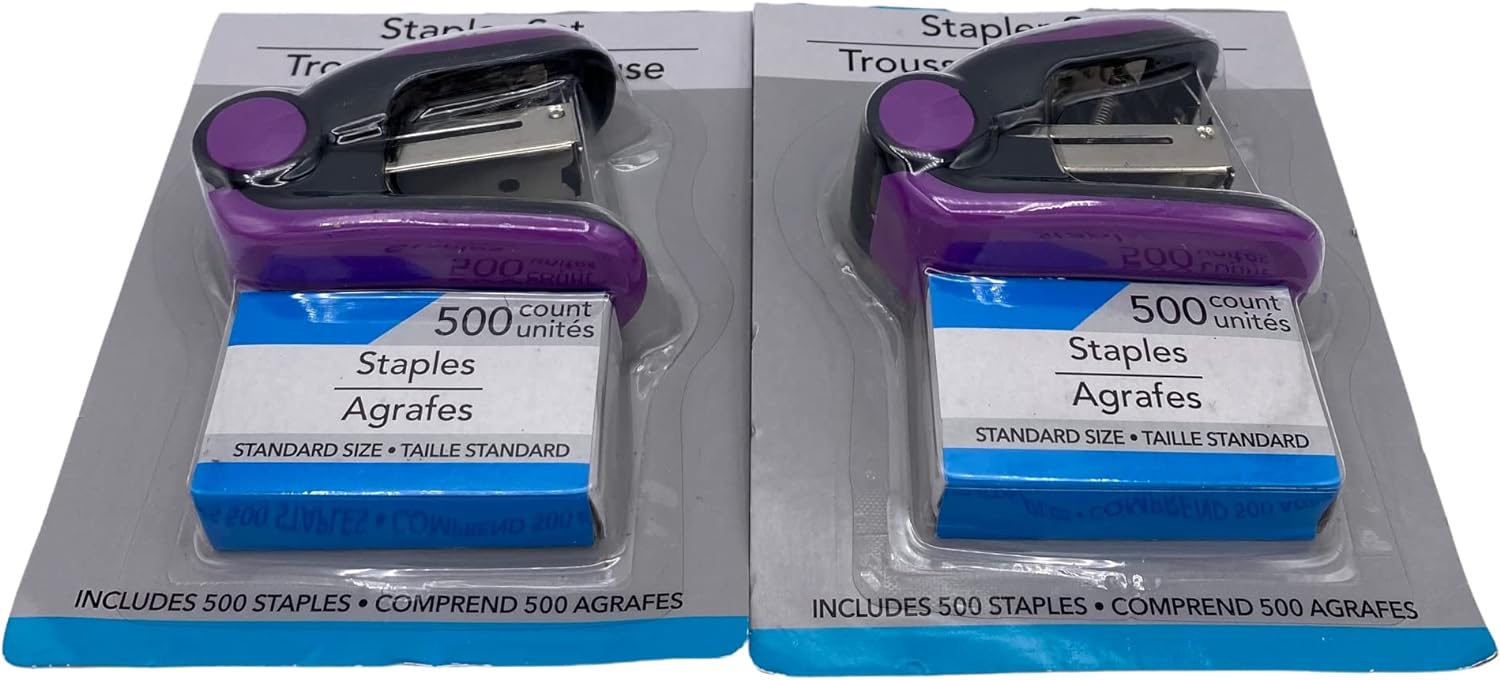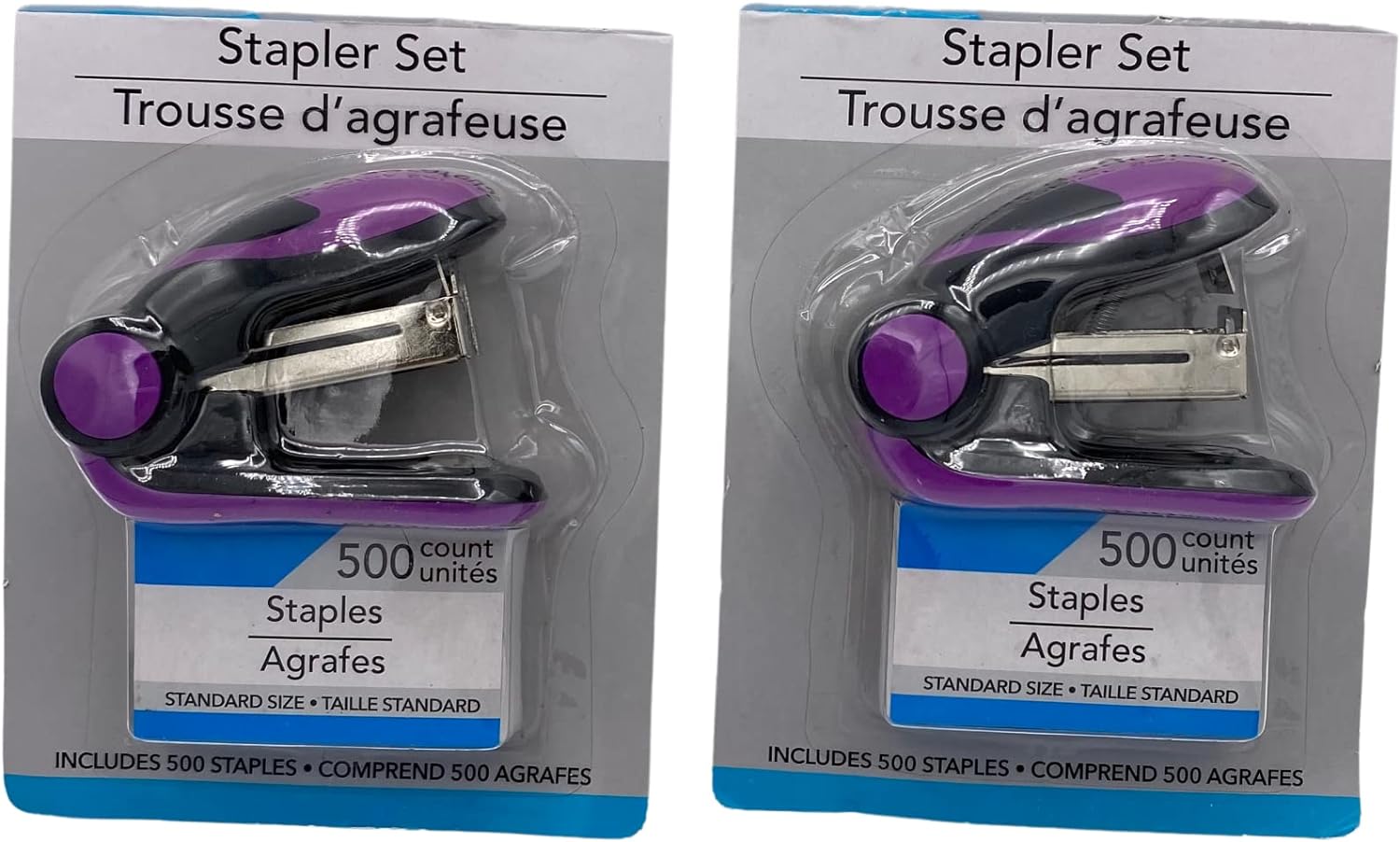 MODAIO-Colorful Mini Staplers, 2.75 x 1.75 x 1.25 in - 2/pcs - Comes with 500 Count Pack of Staples (Purple)
