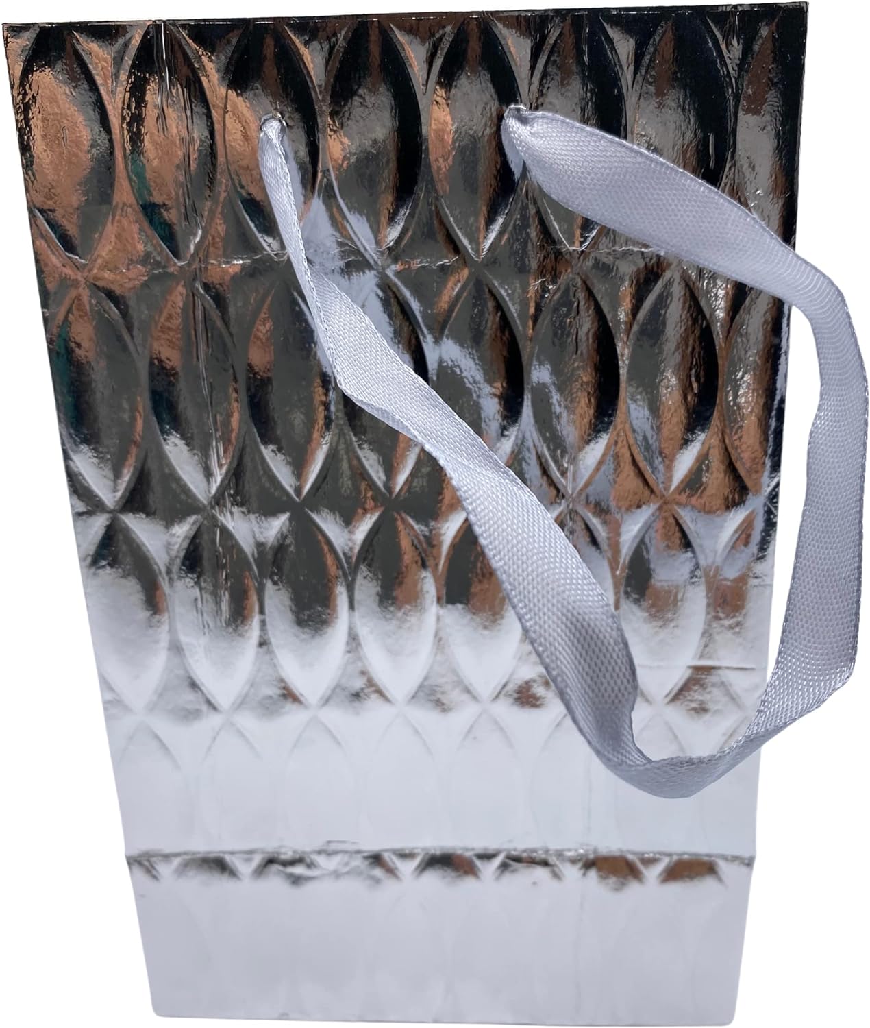 MODAIO-Gift Bags Small Size – Reusable Gift Bags With Handles From Three Different Stunning Colors - Perfect As Goodie Bags, Birthday Gift Bags, Party Favor Bags– 4"W x 3"D x 6"H Size-1/count- (Silver)