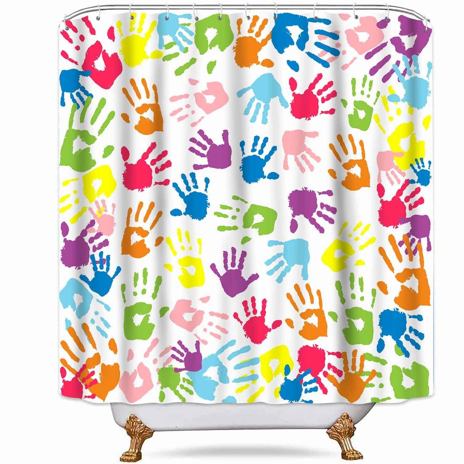 This watercolor rainbow bathroom curtain adds vibrant color and fun to any bathroom. Made from durable polyester fabric, it measures 72 x 72 inches and features HD digital printing with vivid, crisp colors that won’t fade. The lightweight material is easy to hang and care for, requiring only gentle machine washing or hand washing in cold water, then hang drying. Reinforced top headers with rust-resistant metal grommets ensure easy installation, and the weighted hem helps keep the curtain hanging evenly. The curtain is PVC-free, environmentally friendly, and free of irritating odors, providing a safe choice for your family’s health. It arrives folded, so wrinkles may occur but will smooth out quickly when hung in a humid bathroom environment. The product includes 12 free white C-type plastic hooks for easy setup. Available in multiple sizes, this curtain offers a stylish and practical upgrade to your bathroom decor.