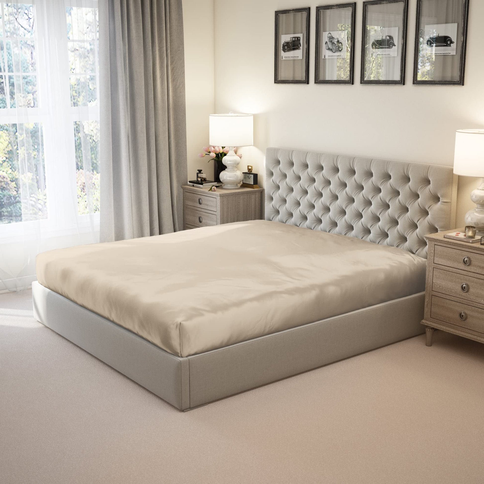 Mu erry 100% Pure Queen Silk Fitted Sheet 22 Momme 6A Mu erry Silk Bed Sheets with 16" Deep Pocket Breathable, Ultra-Soft, Oeko-TEX Seamless Sand