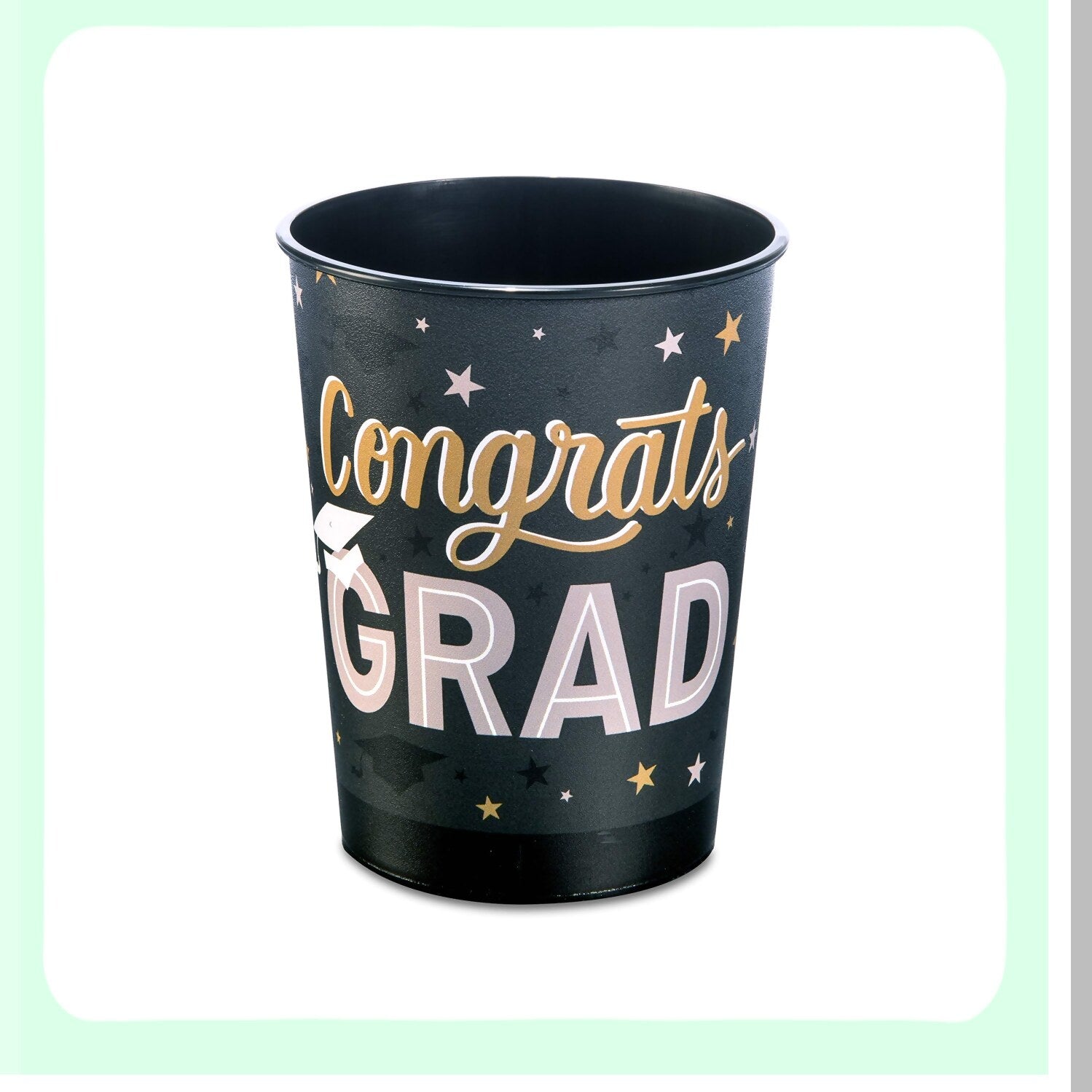 Celebrate graduation with these colorful reusable plastic party cups. Each 8-pack includes 16-ounce cups featuring vibrant wrap-around designs with mortarboard and star motifs in black, gold, and silver. Made from BPA-free plastic, these cups are dishwasher safe on the top rack for easy cleaning. Perfect for serving beverages at graduation parties, they add a festive touch to your celebration. Coordinate with other graduation-themed supplies to create a memorable table setting. These cups are ideal for congratulating graduates in style and making your event special. Durable and practical, they are suitable for various beverages and can be reused for future celebrations. Enhance your graduation party with these eye-catching cups that combine functionality with celebratory design. They are a great addition to your party essentials, helping you create a joyful and memorable event for graduates and guests alike.