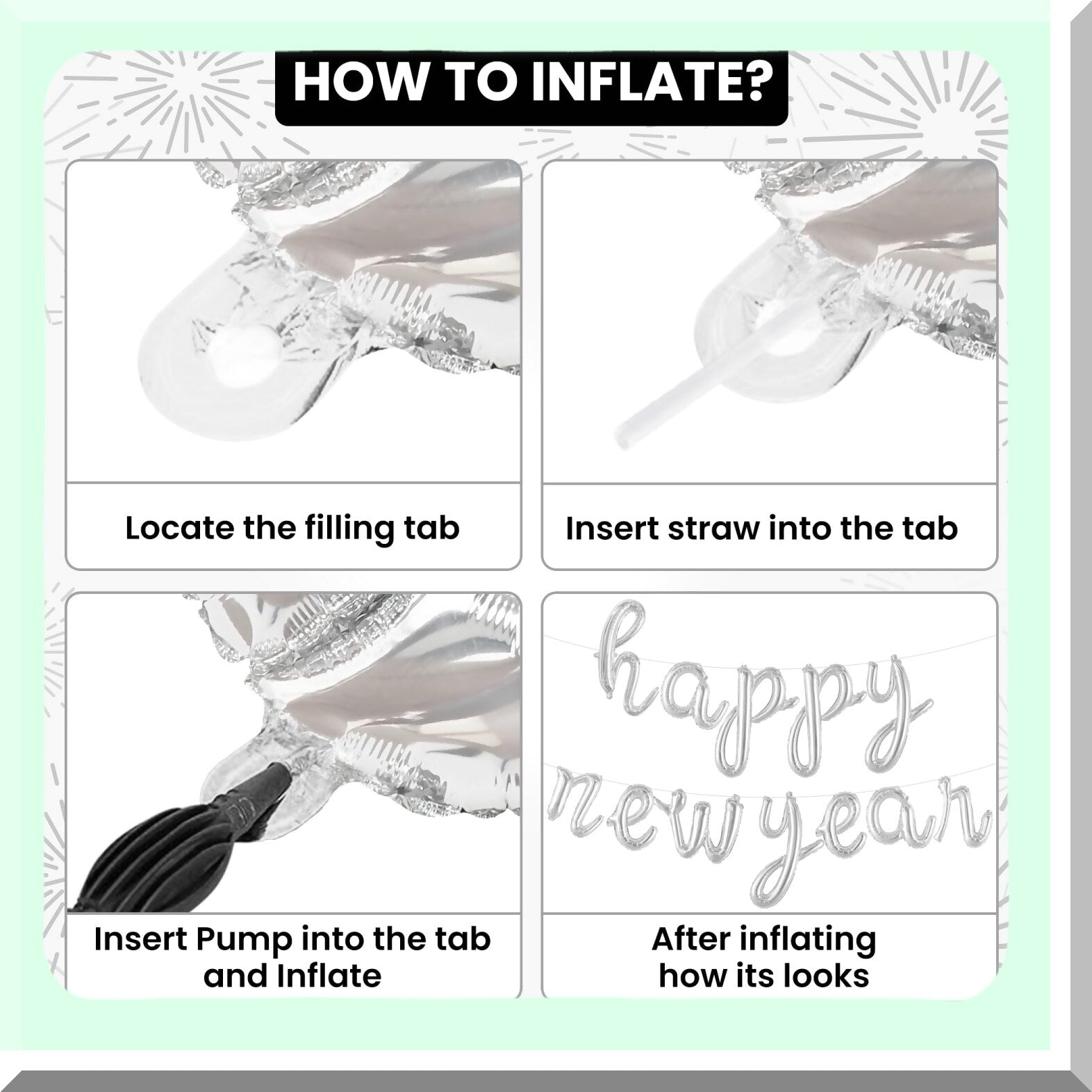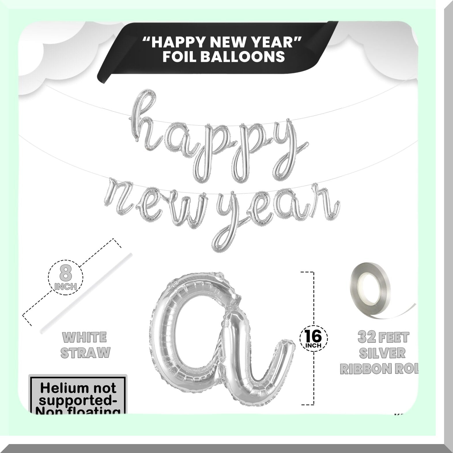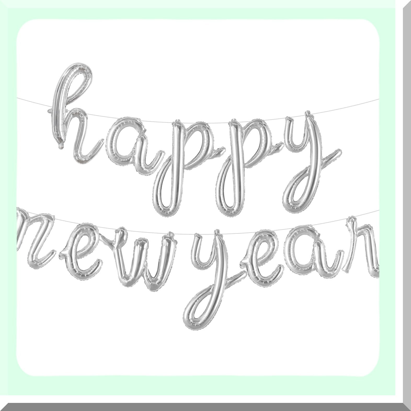 Celebrate the arrival of 2024 with elegant silver decorations designed for New Year's Eve parties. These 16-inch shiny foil balloons feature script lettering that adds a sparkling touch to your celebration. Made from high-quality materials, they are durable and reusable, allowing you to enjoy multiple events. The balloons can be inflated with air or helium and come with a self-sealing valve to prevent gas escape. Complement your party with a matching silver banner that creates a luxurious backdrop, perfect for photo booths, dessert tables, or as a centerpiece. Versatile and stylish, these decorations suit various themes and settings, including home, office, or school celebrations. The set includes a silver ribbon roll and a white straw for easy inflation. Enhance your New Year's Eve with these eye-catching decorations that bring joy and elegance to your festivities. Make your celebration memorable with these premium party supplies designed to elevate your event.
