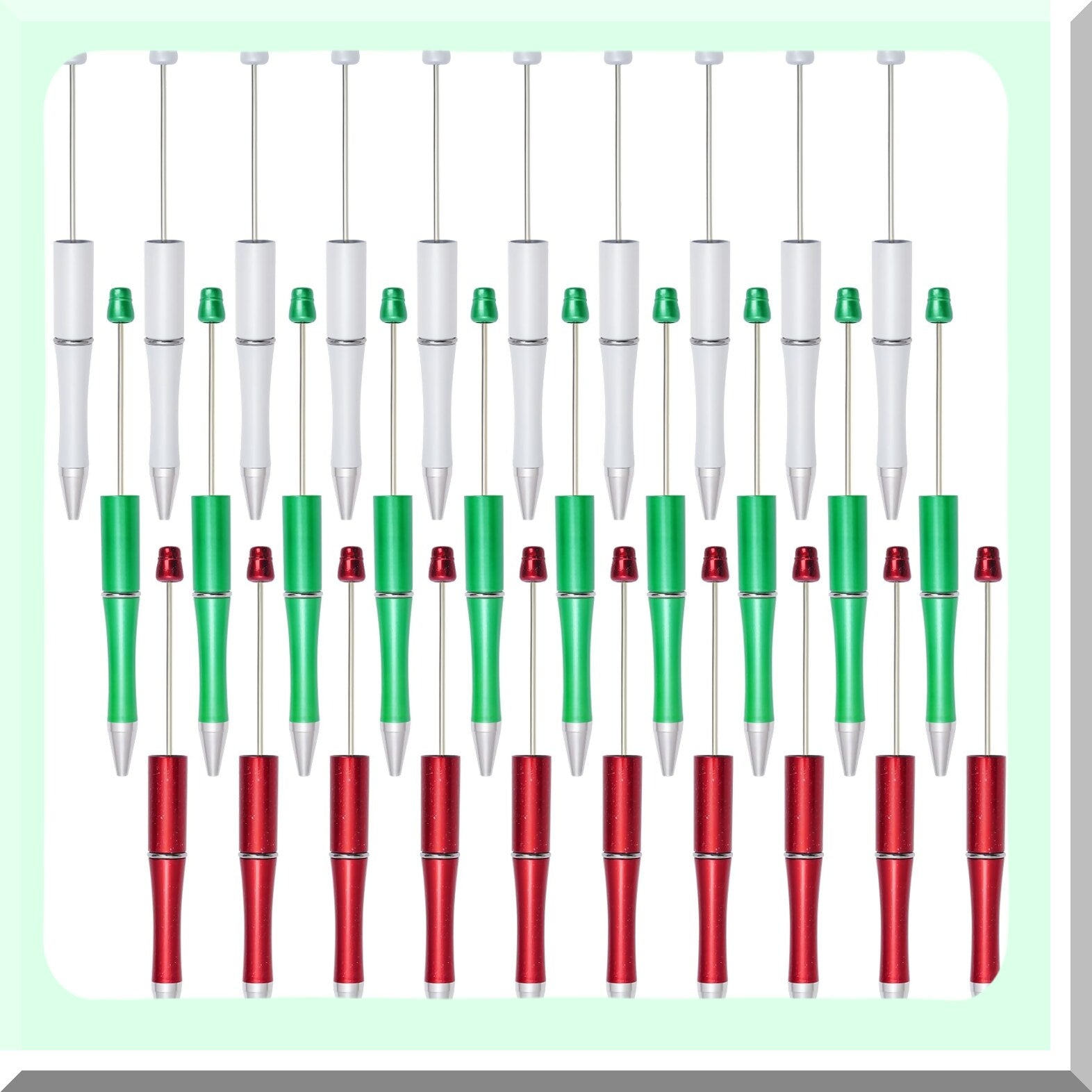 This package includes 30 beadable pens in bulk, featuring black ink refills and three additional colors: red, white, and green. The pens are made from durable plastic, offering a smooth writing experience and colorfast quality. Each pen measures approximately 5.5 x 0.39 inches (14 x 1 cm), making them compact and portable to fit easily into purses, bags, or pockets. Designed for ease of use, the pens rotate to reveal the refill, allowing simple replacement and customization. They are ideal for signing, note-taking, and writing in various settings such as home, office, school, or business environments. The beadable feature enables users to personalize the pens with beads, making them suitable for creative DIY projects. These versatile pens serve as fun and unique gifts for friends, family, students, teachers, or colleagues, perfect for birthdays, weddings, graduations, or special events. The bulk quantity ensures long-lasting use for multiple occasions.