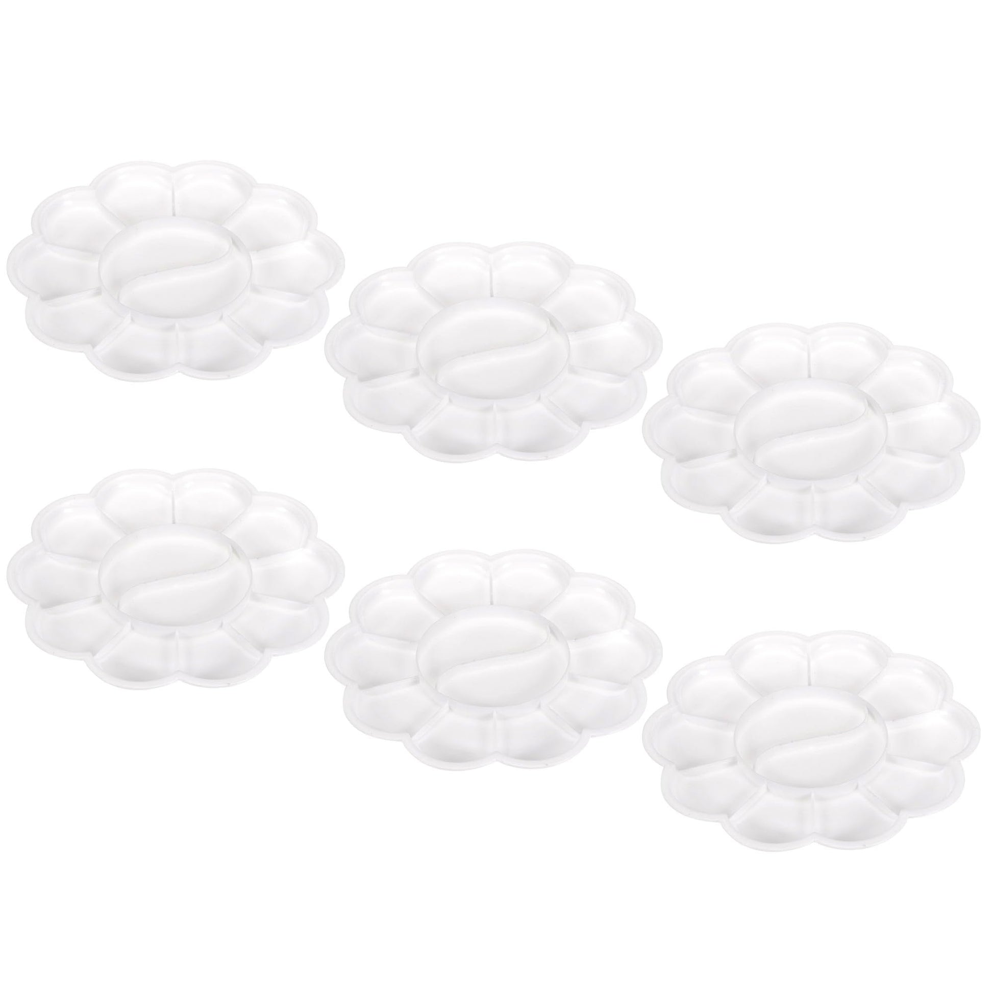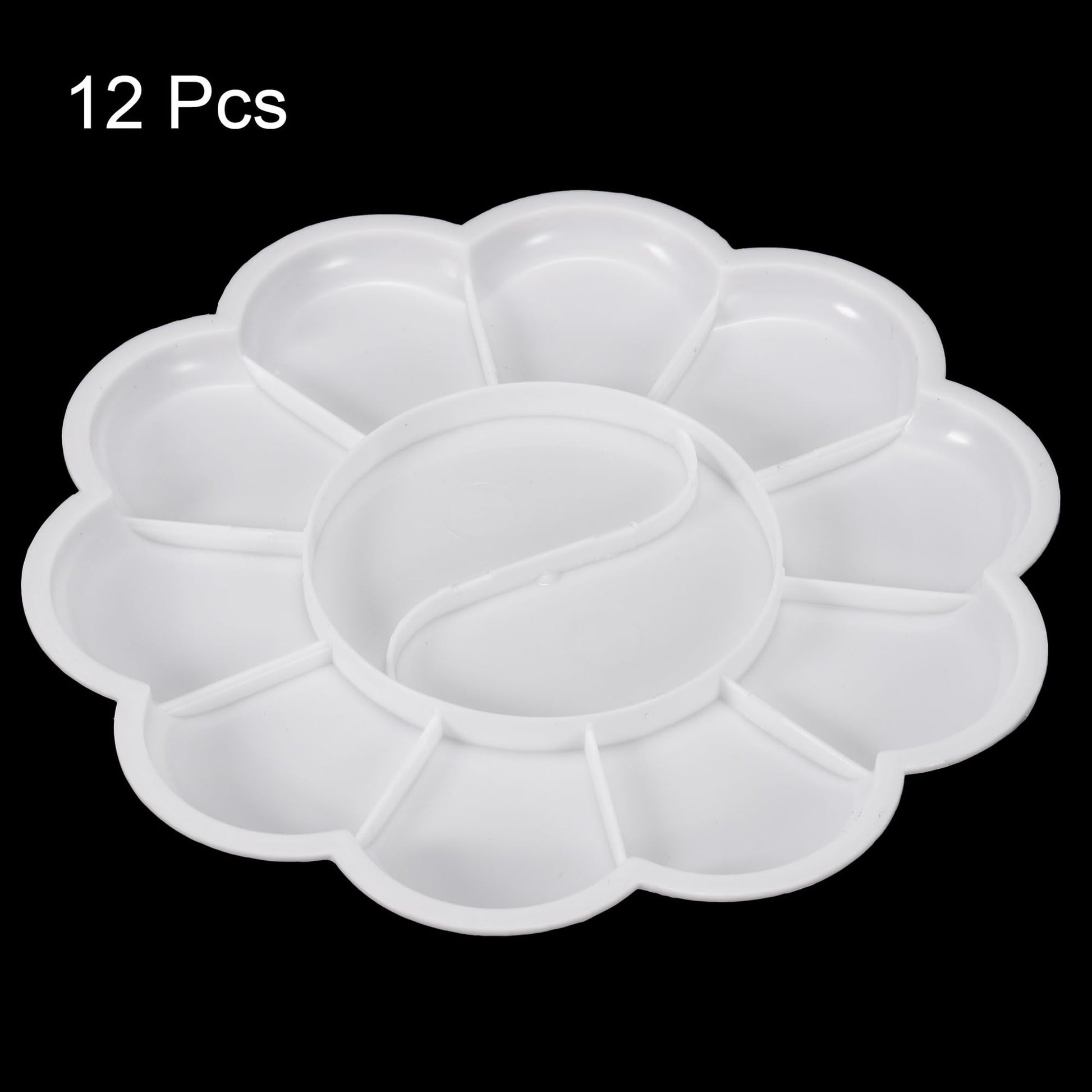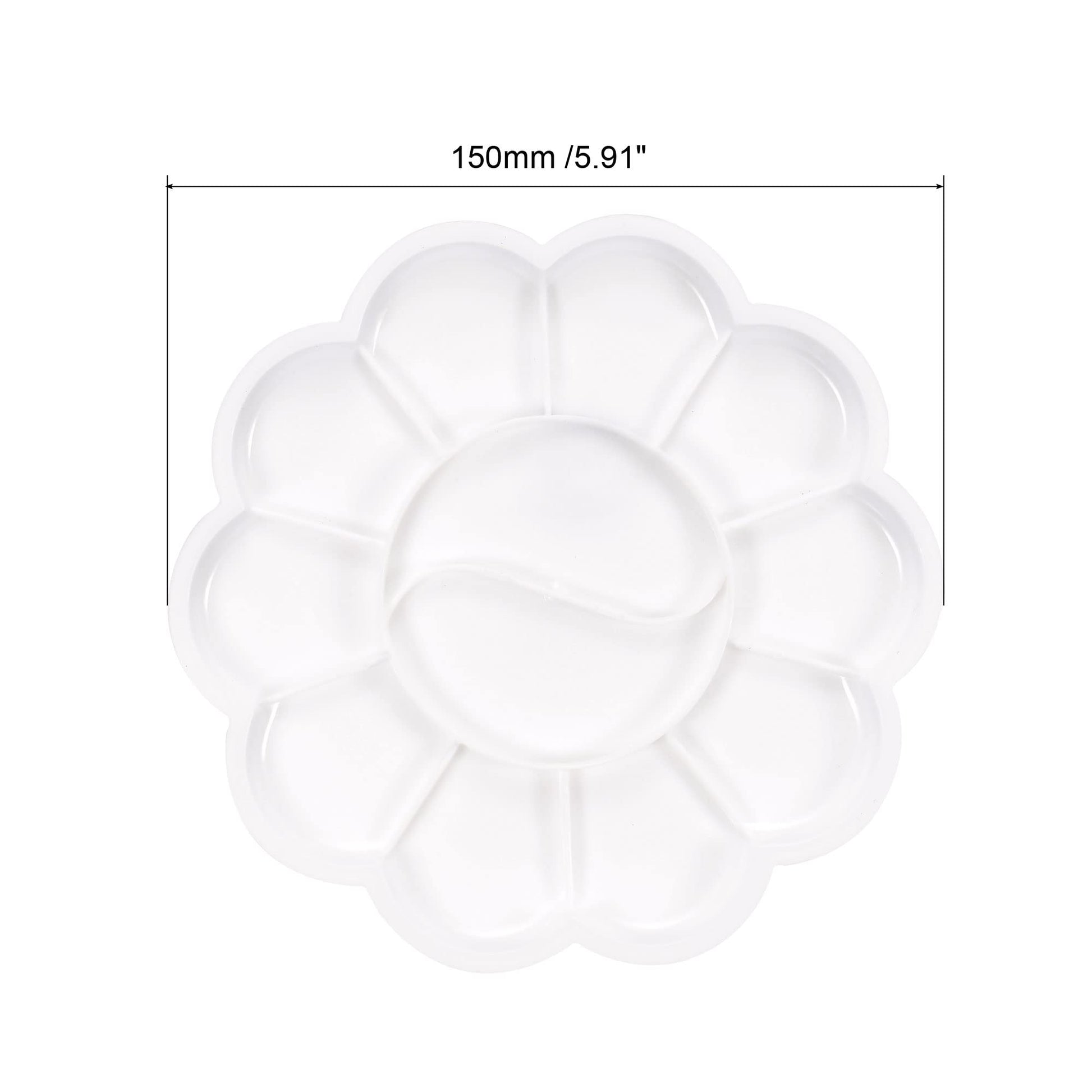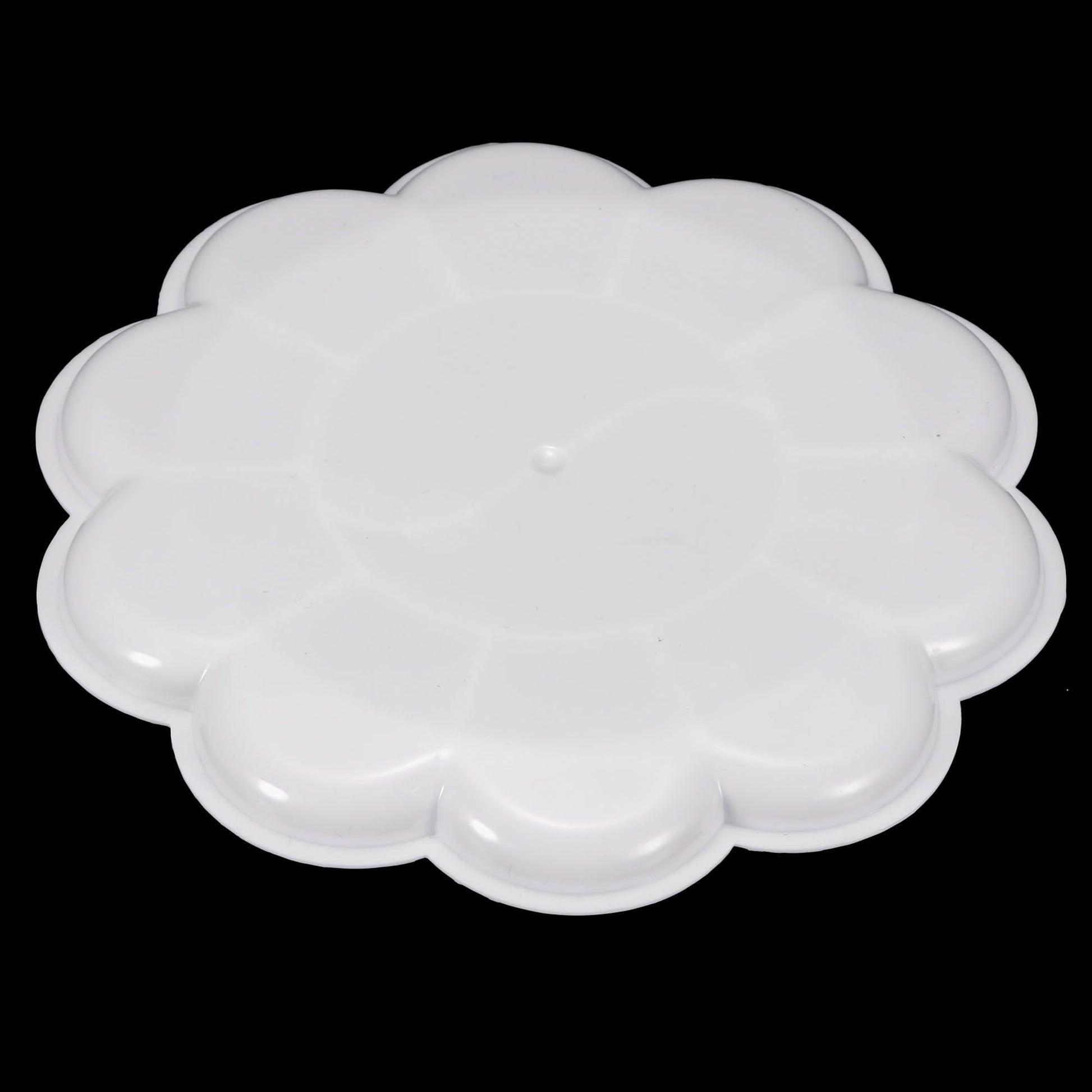 A 12-well acrylic paint palette crafted from durable plastic, measuring 150mm x 150mm x 10mm. Its flower-shaped design offers a charming aesthetic while providing ample space for mixing colors. Each well is distinct, preventing color blending and making it easy to organize different shades. The smooth surface ensures easy cleaning and reuse, making it suitable for various painting mediums such as watercolor, oil, and gouache. The lightweight construction allows for convenient portability, ideal for travel or outdoor painting sessions. The palette's sturdy build ensures long-lasting use, and its compact size makes it easy to store. Perfect for artists, painters, students, and hobbyists, this palette is a practical addition to any art supplies collection. It can be used in studios, classes, or casual painting activities, making it a versatile tool for creative expression. The simple design and functional features make it a reliable choice for mixing and organizing paints during artistic projects.