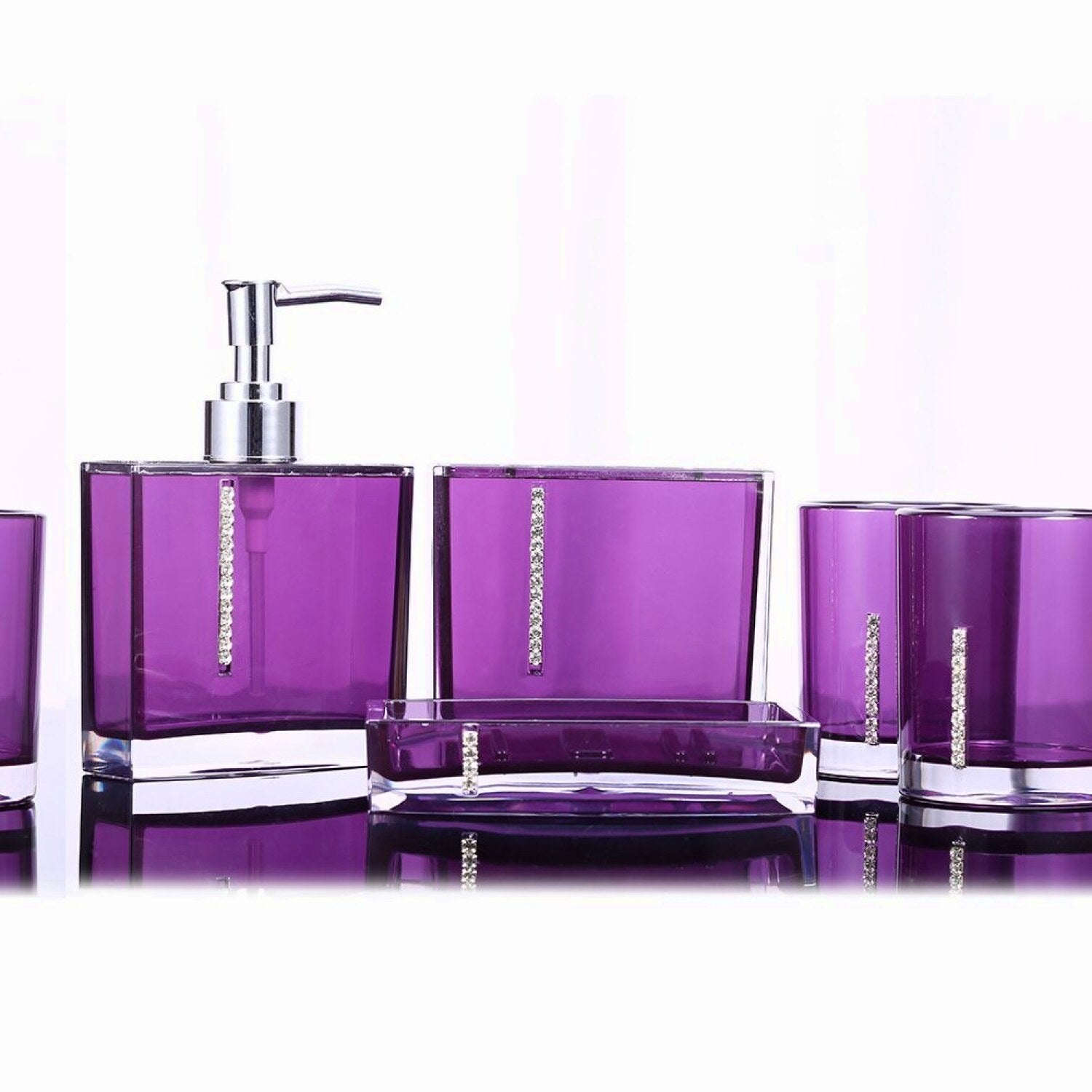 This 5-piece acrylic bathroom accessory set includes a bath cup, bottle, toothbrush holder, soap dish, and gargle cup, making it ideal for home, hotel, or travel use. Crafted from durable acrylic, these accessories feature a high-gloss, scratch-resistant surface that is easy to clean. The simple design and vibrant dark purple color add a modern touch to any bathroom decor. The set’s visually appealing design enhances the overall aesthetic, bringing a sense of luxury, style, and comfort at an affordable price. Made from resin, these accessories are built to withstand everyday use and are less fragile than glass. Weighing approximately 761 grams, the set combines practicality with elegance, making it suitable for various settings including homes, hotels, and travel environments. The sleek, contemporary look complements any modern bathroom, providing a functional and stylish solution for organizing daily essentials.