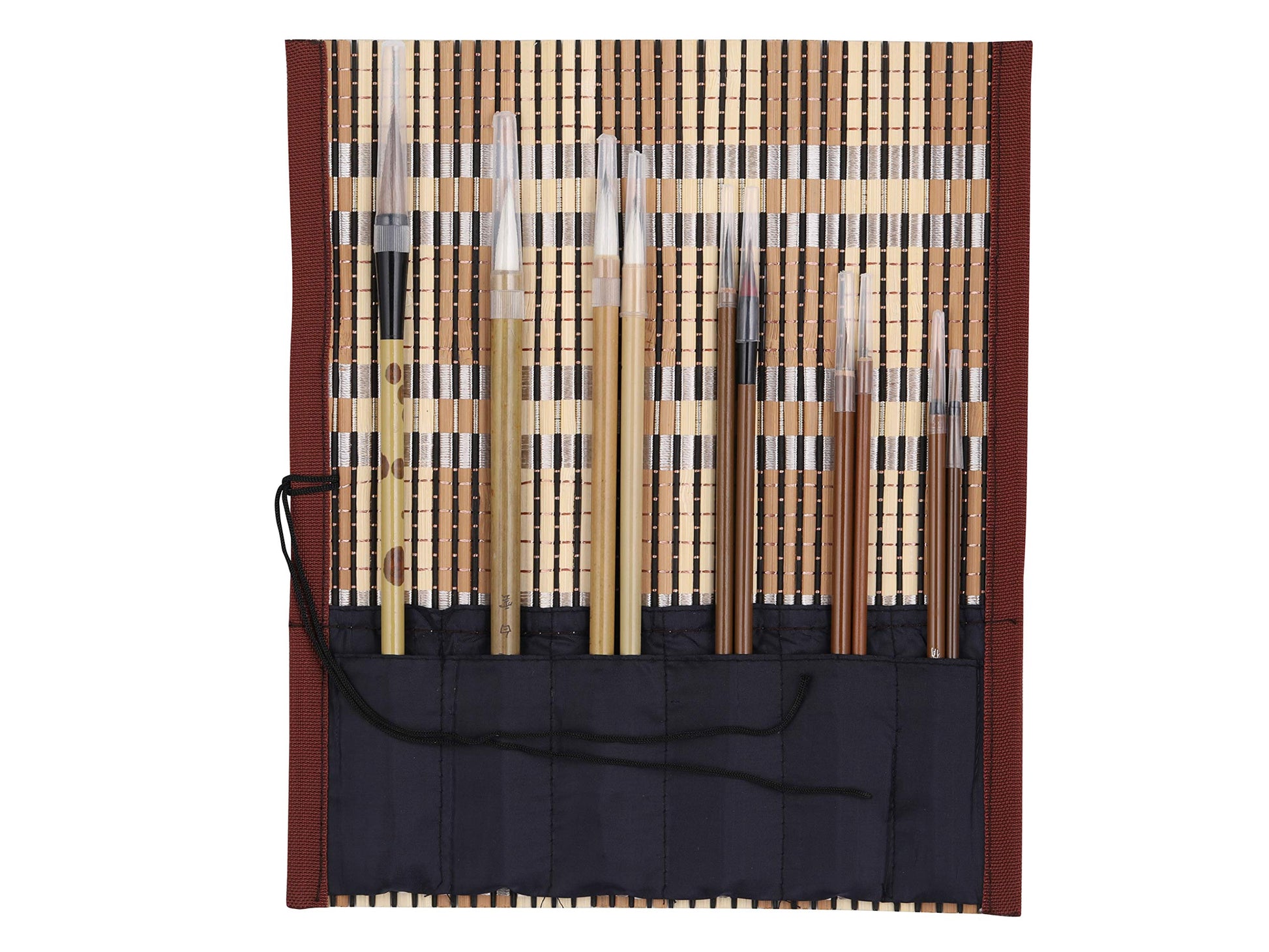 This set includes 10 Chinese calligraphy brushes in various sizes, along with a roll-up bamboo holder. The brushes are suitable for creating detailed paintings of bamboo, chrysanthemum, pine, lotus, peony, plum blossom, fish, and landscapes. They are versatile enough for different calligraphy styles such as kaishu and Lishu. Ideal for both painting and calligraphy, these brushes are suitable for beginners and enthusiasts alike. The set provides all the tools needed to explore traditional Chinese art, including ink wash painting and calligraphy. The bamboo wrap offers convenient storage and portability. Whether practicing or creating finished artwork, this collection supports the learning and appreciation of Chinese calligraphy and painting techniques. It makes a thoughtful gift for those interested in Chinese art, providing quality brushes for a variety of artistic applications.