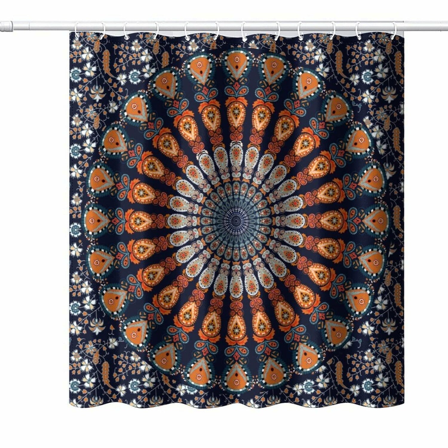 This bohemian-style shower curtain features a vibrant peacock design in multiple colors, adding a lively touch to your bathroom decor. Made from 100% polyester fabric, it offers durability and a fresh appearance. The curtain measures 66x72 inches (168x183 cm) and comes with 12 hooks for easy installation. Its bright, colorful pattern can enhance the overall look of your bathroom space. The polyester material is machine washable; wash cold on a gentle cycle with mild detergent. Do not bleach. For maintenance, a quick rinse or wipe after use is sufficient. Please note that manual measurement may result in a discrepancy of 0.3 to 0.7 inches, and color differences may occur due to monitor settings. If you have any questions about the product, customer service is available to assist. This curtain is a stylish and practical addition to any home bathroom.