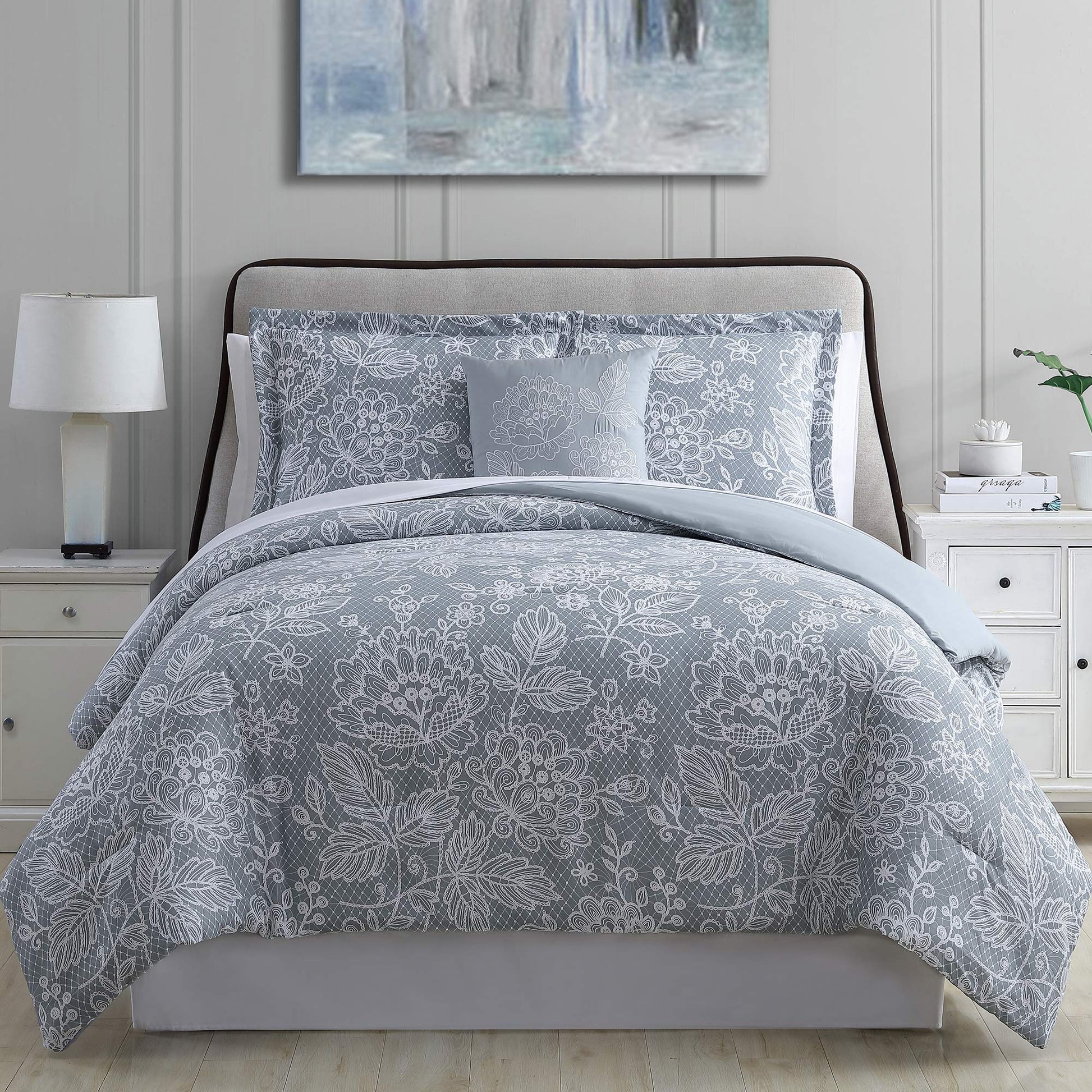 Olivia 8-Piece Reversible Bed in a Bag Silver Blue, Queen)