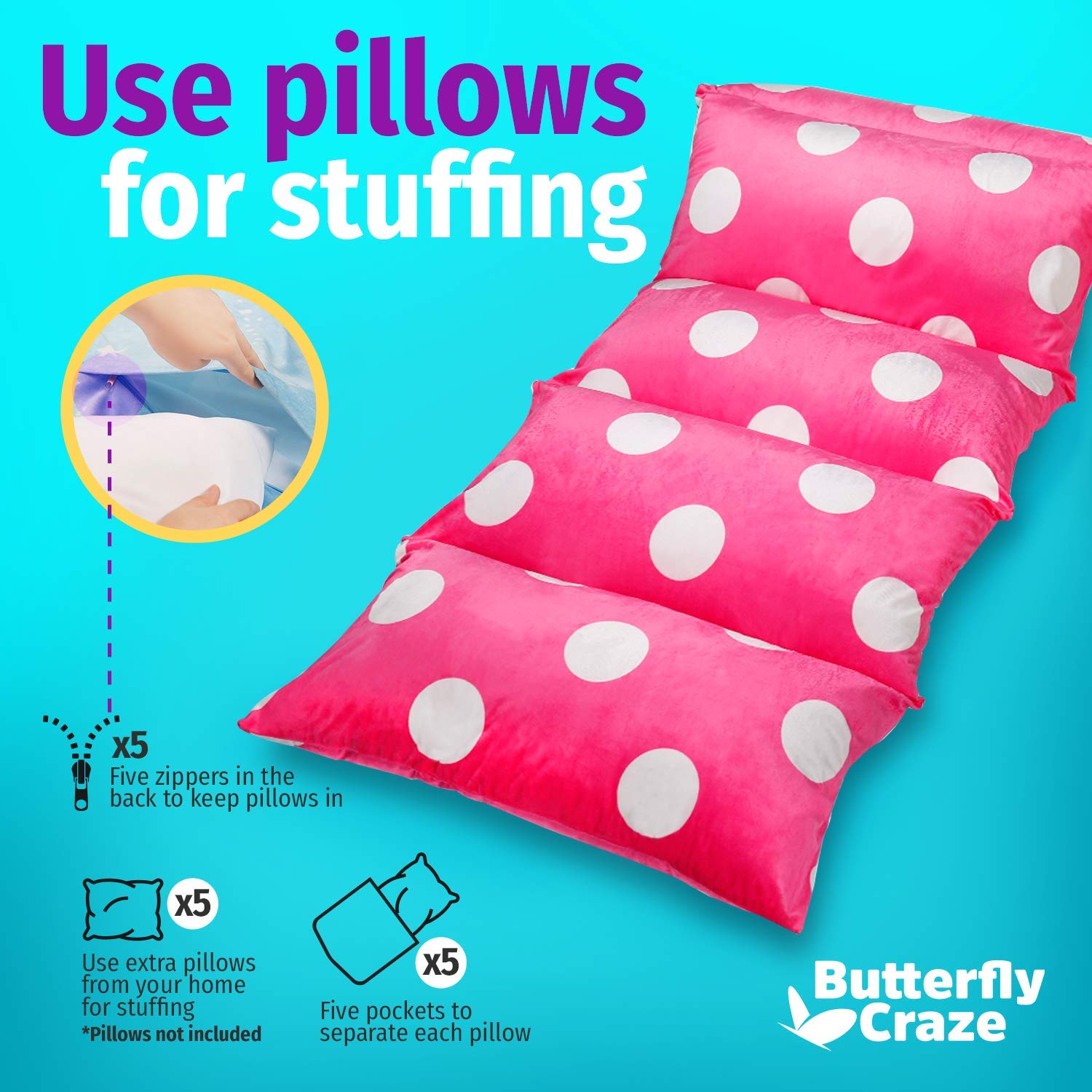 Pillow Bed Floor Lounger Cover 5 King Pillows Required) Perfect Recliner Floor Pillow for Kids Pillow Lounger for Reading Playing Games Hot Pink Polka Dot, King