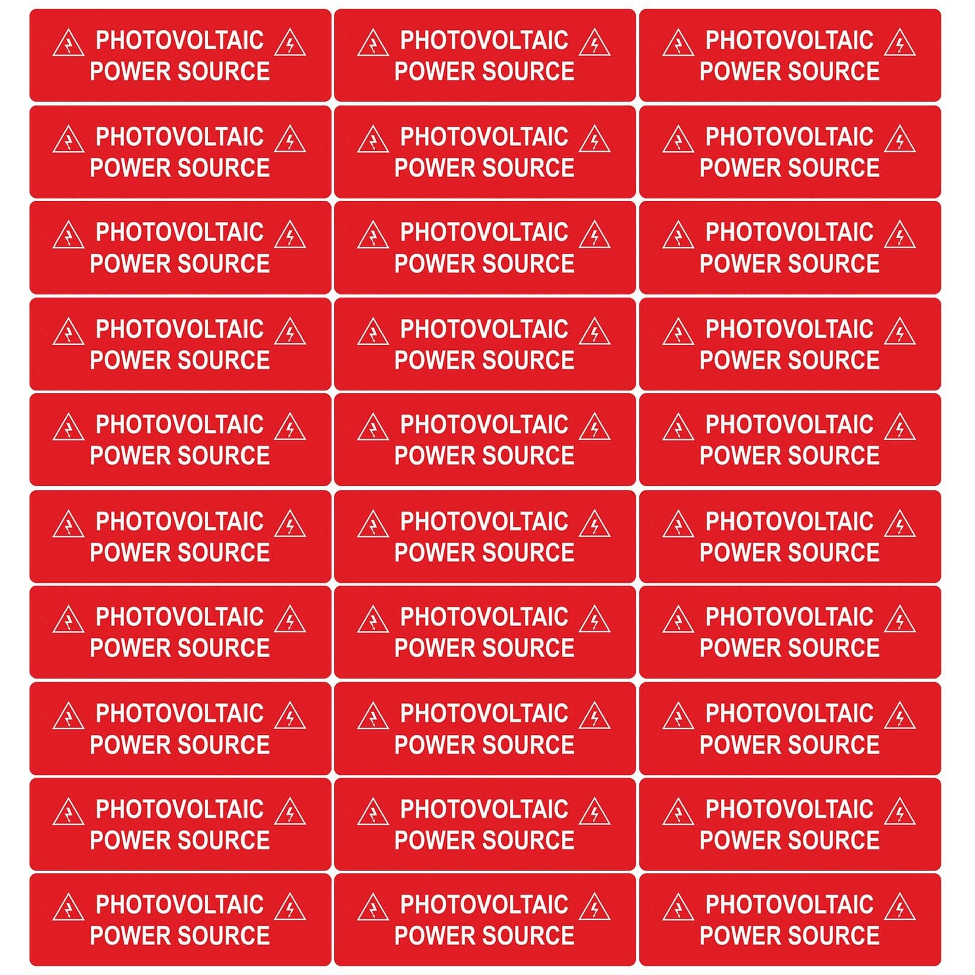 Each pack contains 20 robust labels, each measuring 4" x 1", featuring a powerful "Photovoltaic Power Source" warning that guarantees easy identification. The strong adhesive backing ensures that these labels stay securely in place, preventing accidental mishandling and enhancing safety for both users and technicians.