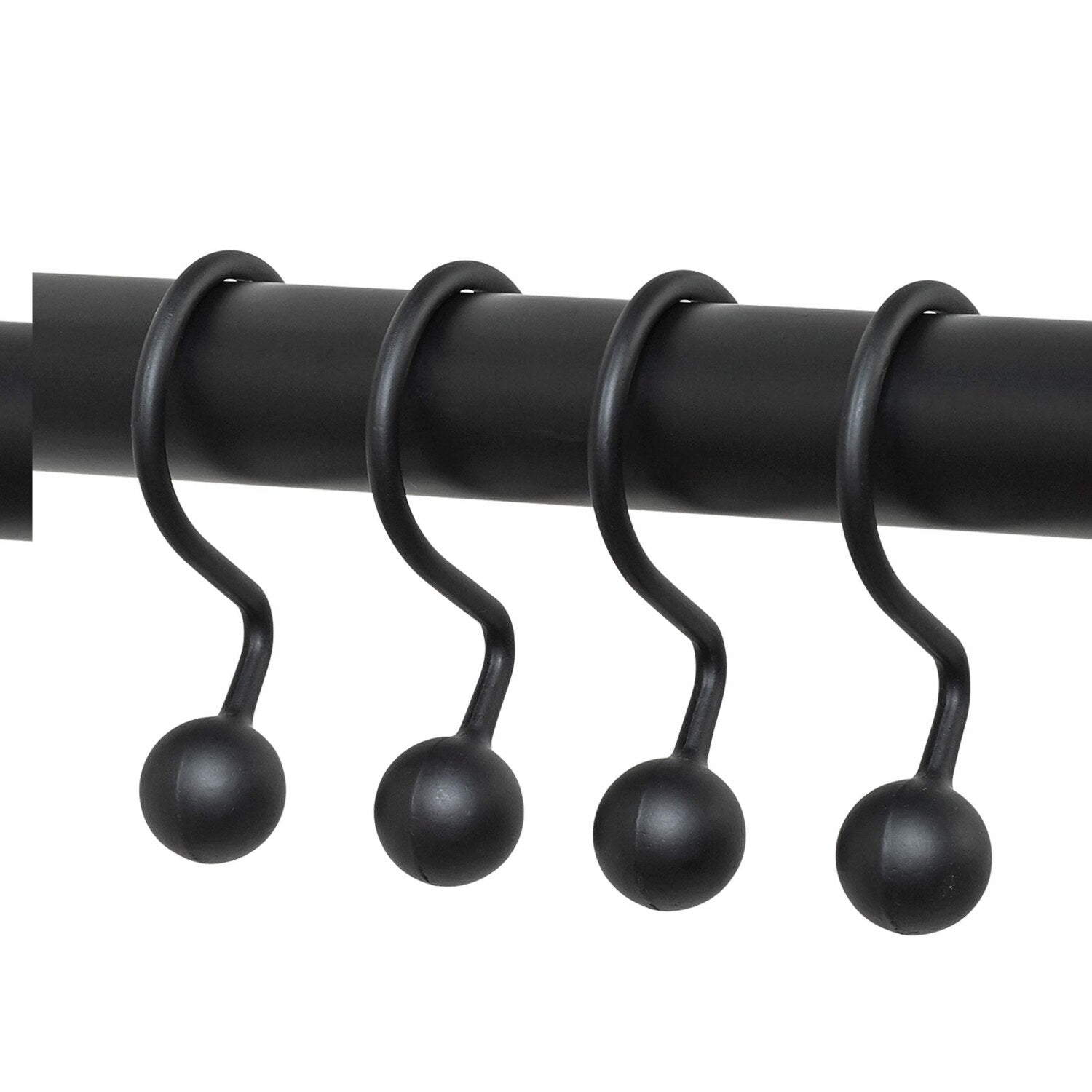 These rustproof aluminum shower hooks feature a decorative ball-shaped end to keep your shower curtain or liner securely in place. Made from strong, lightweight aluminum, they are designed to resist rust for a lifetime. The hooks easily attach to any standard shower rod and move smoothly for convenient use. Their sleek matte black finish adds a stylish touch that complements various bath decor. Each pack includes 12 hooks, matching the typical number of holes on standard shower curtains and liners. The ball-shaped end not only enhances the appearance but also helps prevent the curtain from slipping off the hook. These hooks provide a durable, functional, and decorative solution for organizing your shower area.