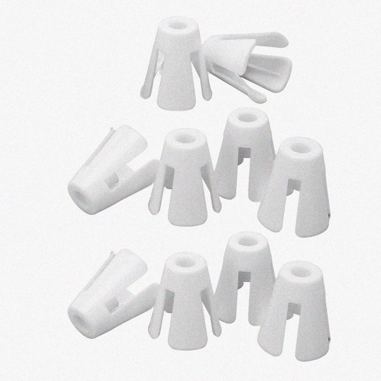 The ThreadGrip Claw Set includes 10 lightweight plastic spool holders designed for industrial sewing machines. Each C-shaped claw measures approximately 4 x 3.5 x 2 cm (1.57 x 1.38 x 0.79 inches), with manual measurement possibly resulting in slight variations. Made from durable plastic, these claws are suitable for use with thread racks on various sewing machines. The set offers strong compatibility, making it convenient for securing spools during sewing operations. The package contains 10 plastic C claws, providing ample replacements or extras for ongoing projects. Their compact size and sturdy construction ensure reliable performance in industrial sewing environments.