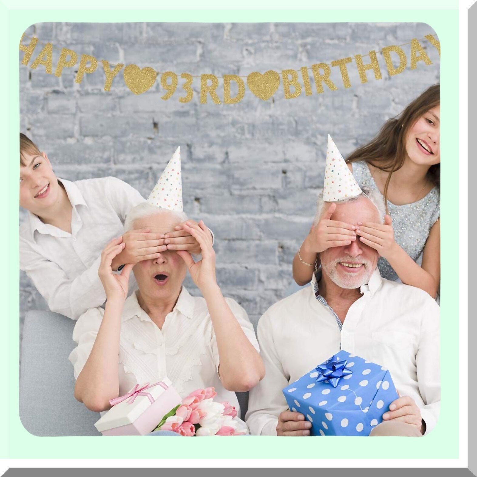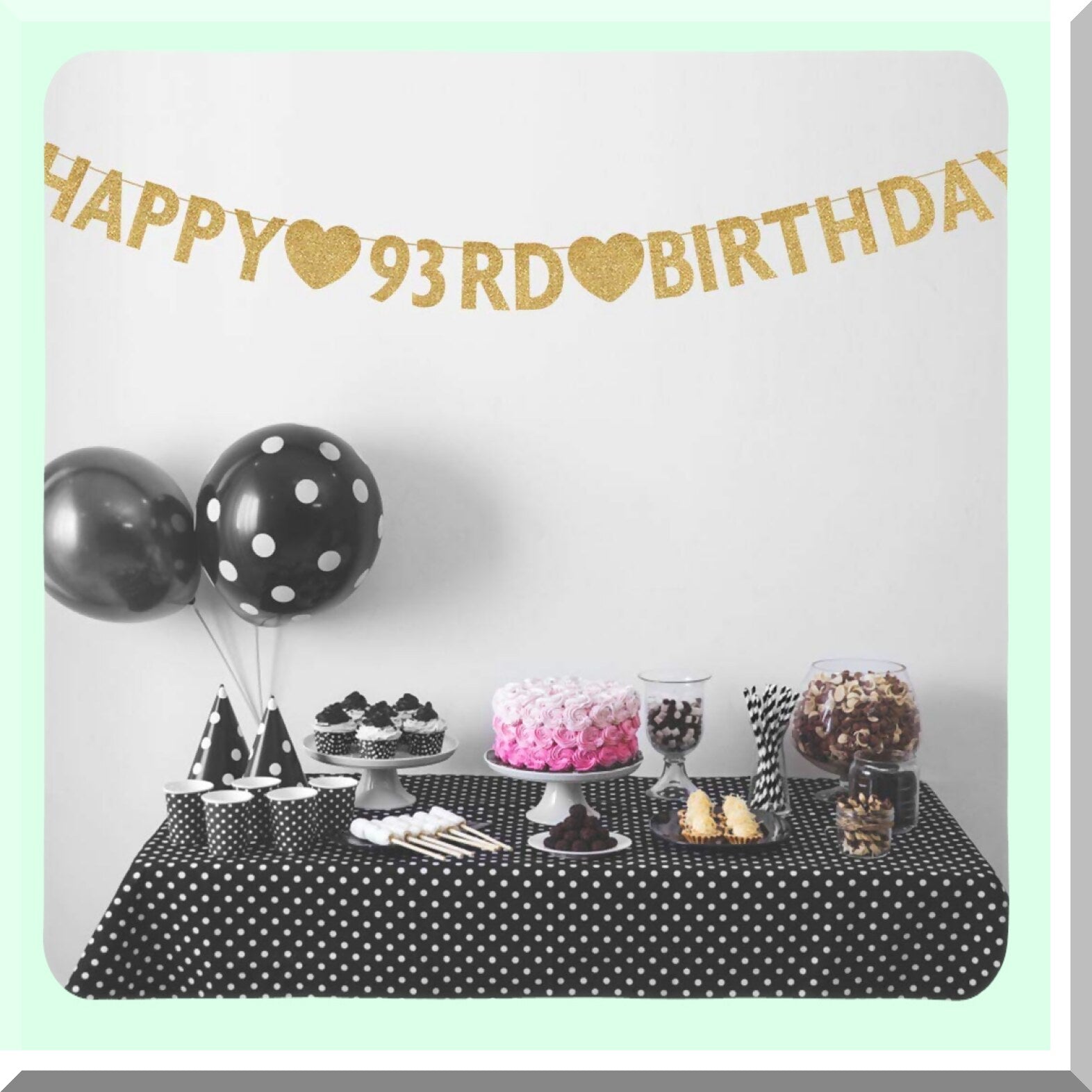 Celebrate a 93rd birthday with this gold glitter banner featuring individual letters measuring 5 inches tall. Crafted from real gold glitter card stock, each piece is shiny and attractive, adding a festive touch to any birthday celebration. The banner includes a handy tool for easy DIY assembly, making setup quick and simple. Ideal for decorating birthday parties for women or men turning 93, this banner enhances the celebratory atmosphere. Durable and eye-catching, it provides a beautiful and elegant decoration option for milestone birthdays.