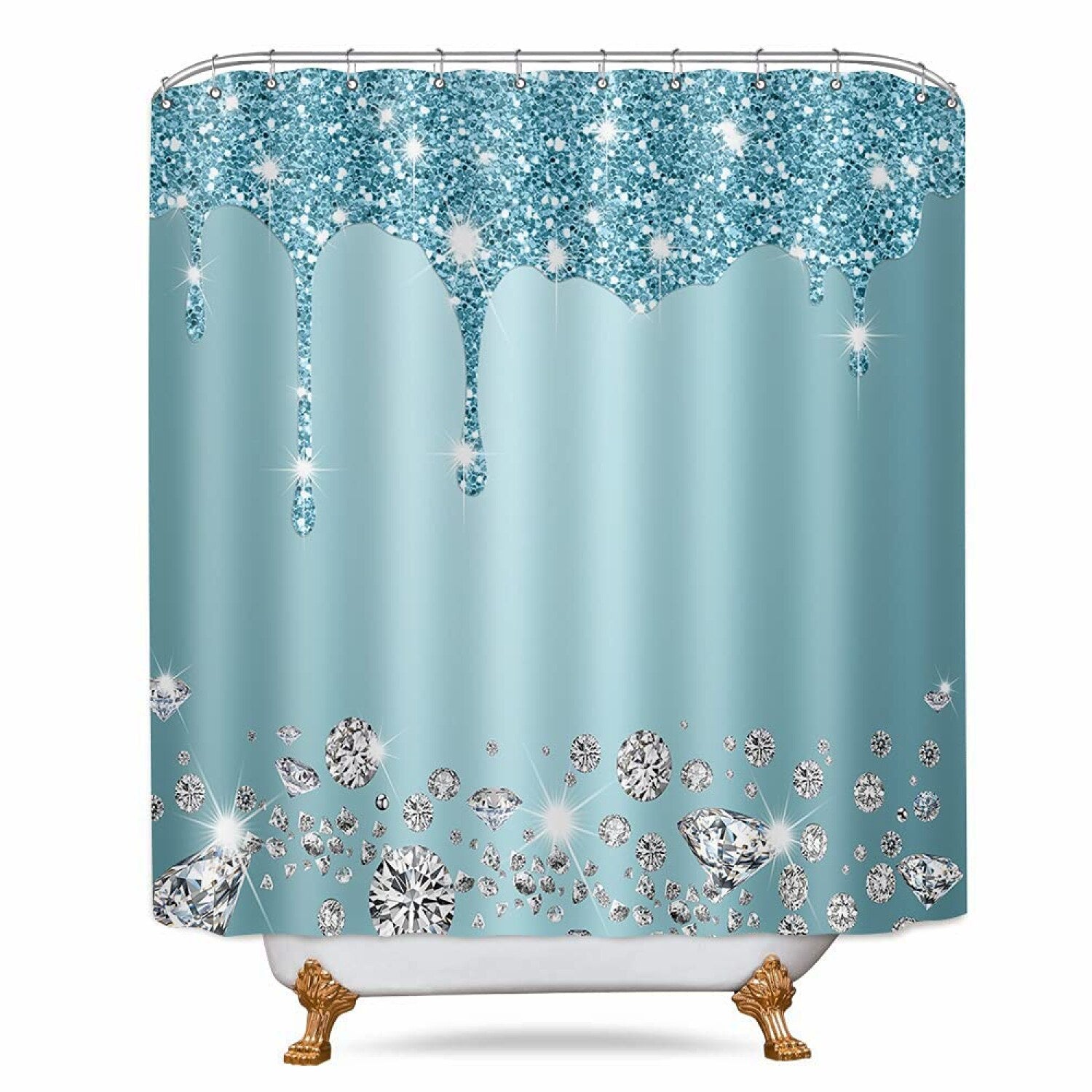 This light blue shower curtain measures 70" wide by 72" long, featuring 12 reinforced metal grommets for easy hanging. Made from 100% polyester with a luxurious, hotel-quality feel, it offers a soft, textured surface that enhances your bathroom decor. The fabric is treated to repel water, allowing it to glide off easily and dry quickly, providing a clean and elegant appearance. Thicker and more closely knit than ordinary fabric, it ensures durability and long-term use. The reinforced top header adds strength, keeping the curtain securely in place. Suitable as a standalone shower curtain, it is a stylish replacement for PVC or PEVA liners. Easy to clean, it is machine washable on a gentle cycle with cold water and mild detergent; do not bleach. Tumble dry on low. Please note, hooks and rod are not included. Dimensions may vary slightly by 1-3cm.