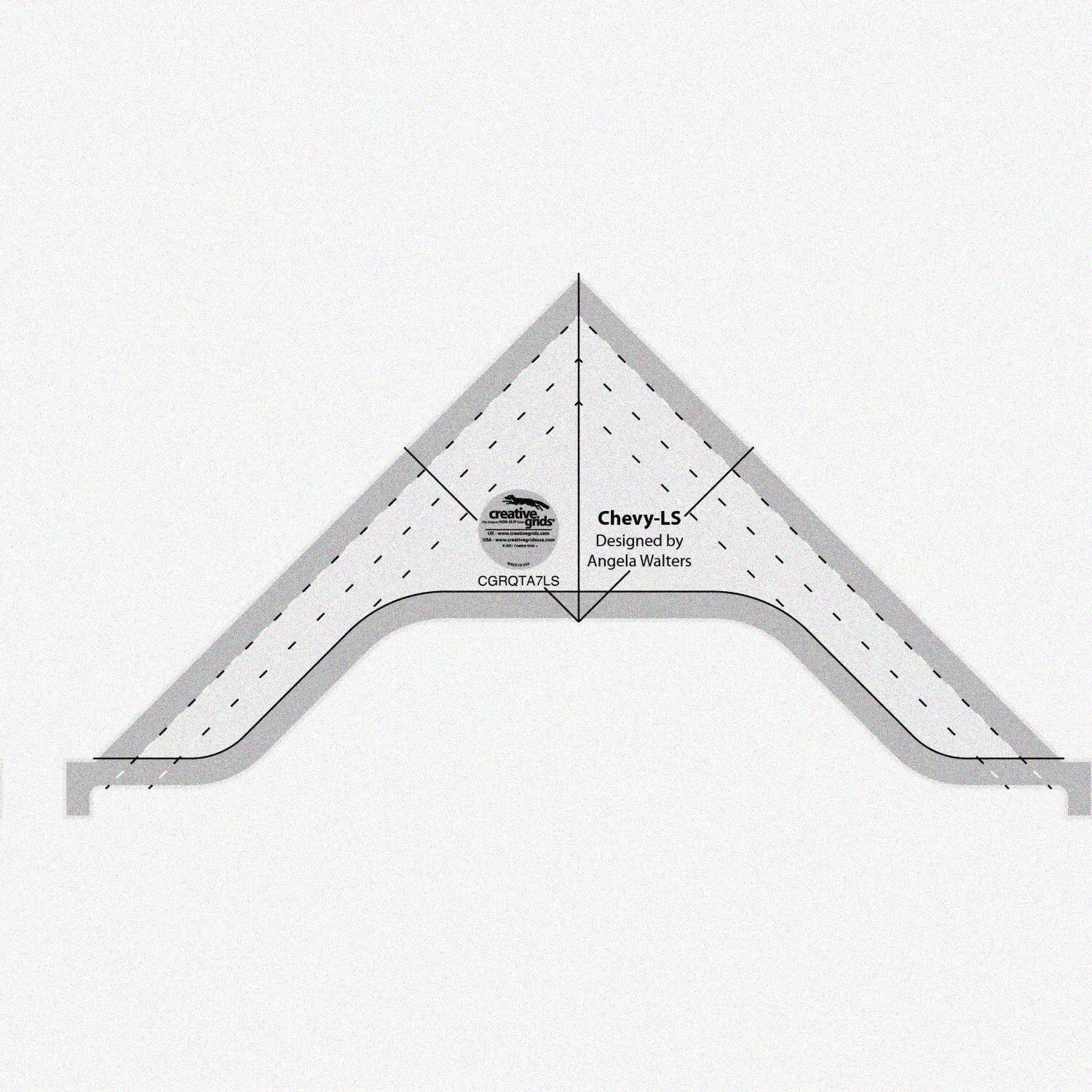 The QuiltEase Low Shank Quilting Guide - Chevy Edition is a versatile 1/8-inch thick acrylic ruler designed for low shank machine quilting. Featuring a combination of a straight and a curvy side, it offers multiple quilting options. The straight side is ideal for stitching in the ditch, echoing, turning corners without rotating the ruler, creating two-sided blocks without marking pivot points, adding chevron designs, and crosshatching with ease. The curvy side is perfect for adding subtle, curvy lines, stitching offset rounded rectangles, creating modern wavy patterns, and segmenting borders. The tool includes a grip to prevent slipping during quilting and black and white dashed guide lines that are visible on all fabric colors. Its shape provides control to help prevent broken needles and crooked lines. Made from high-grade acrylic, it measures 4-1/2 inches by 8-1/2 inches, making it suitable for home sewing machines.