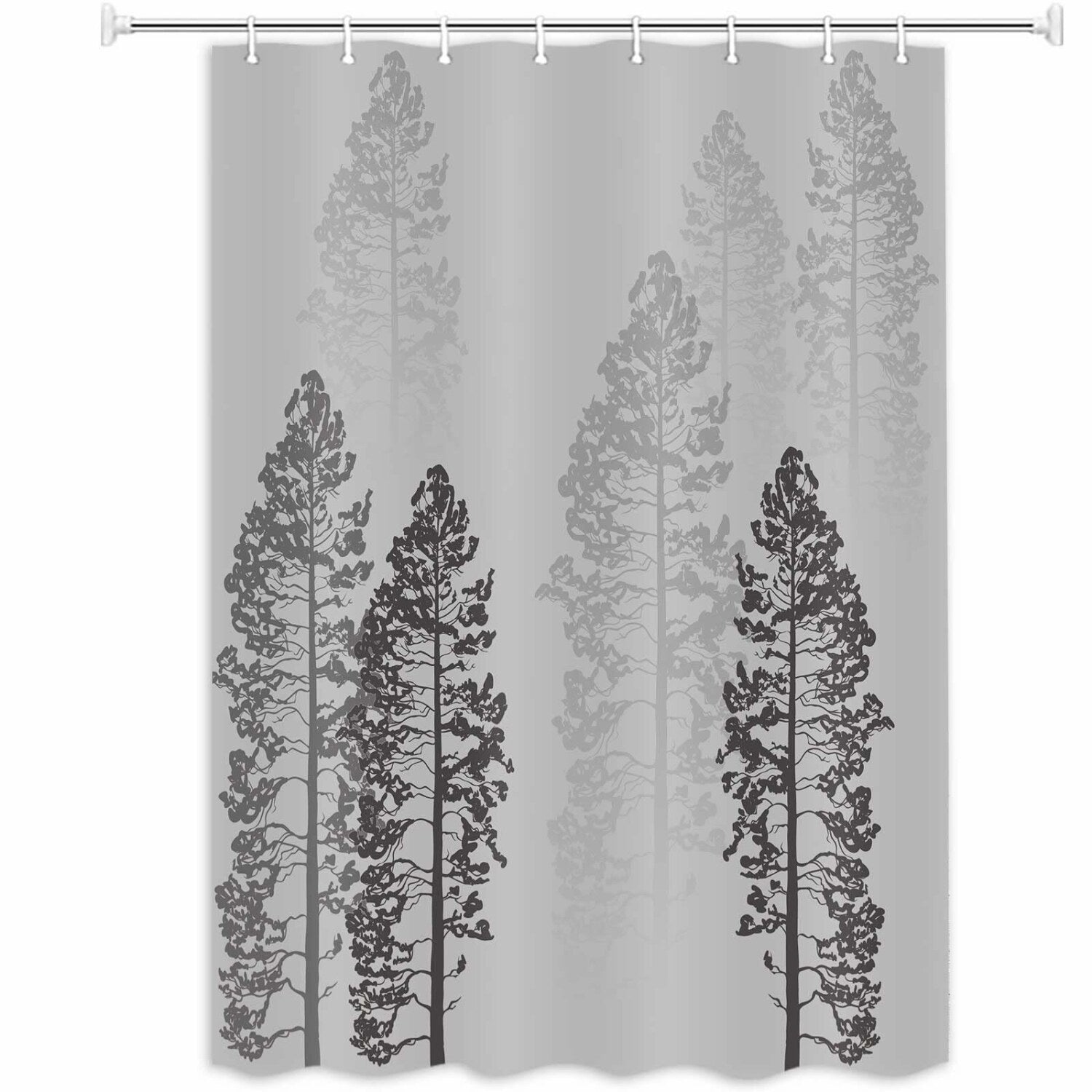 This fabric shower curtain measures 47 inches wide by 64 inches long, suitable for stall-sized showers and stand-up bathtubs. Made from standard 90gsm polyester fabric, it is waterproof and environmentally friendly. The curtain is easy to clean and maintain, being machine washable in cold water. It offers a quick and stylish way to refresh the look of any bathroom, bedroom, restroom, master bathroom, kids' bathroom, dorm room, guest suite, or hotel bath. Its design features a foggy woods and trees landscape, adding depth and value to your space. Please note a 1-2cm measurement error may occur due to manual measurement. Slight color differences may also be visible due to monitor variations. Do not bleach or tumble dry. This versatile curtain enhances the appearance of your bathroom while providing practical waterproof protection.
