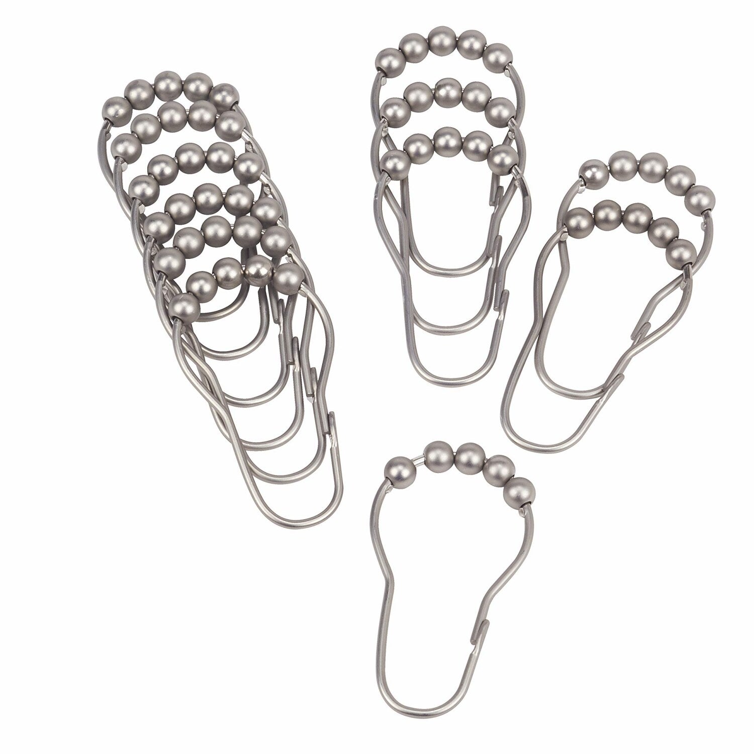 This set includes 12 stainless steel shower curtain roller rings, each measuring 2.7" x 1.4". Designed with easy-glide decorative beads, these rings add a stylish touch while ensuring smooth movement. Made from rust-resistant and water-resistant materials, they are built to withstand moisture and humidity in the bathroom. The lightweight yet durable design helps hold shower curtains and liners securely in place, preventing rips and tears. These rings are suitable for standard shower curtains and liners, making installation simple and hassle-free. The set provides enough rings to replace or upgrade your current shower curtain setup, offering a reliable and attractive solution for your bathroom.