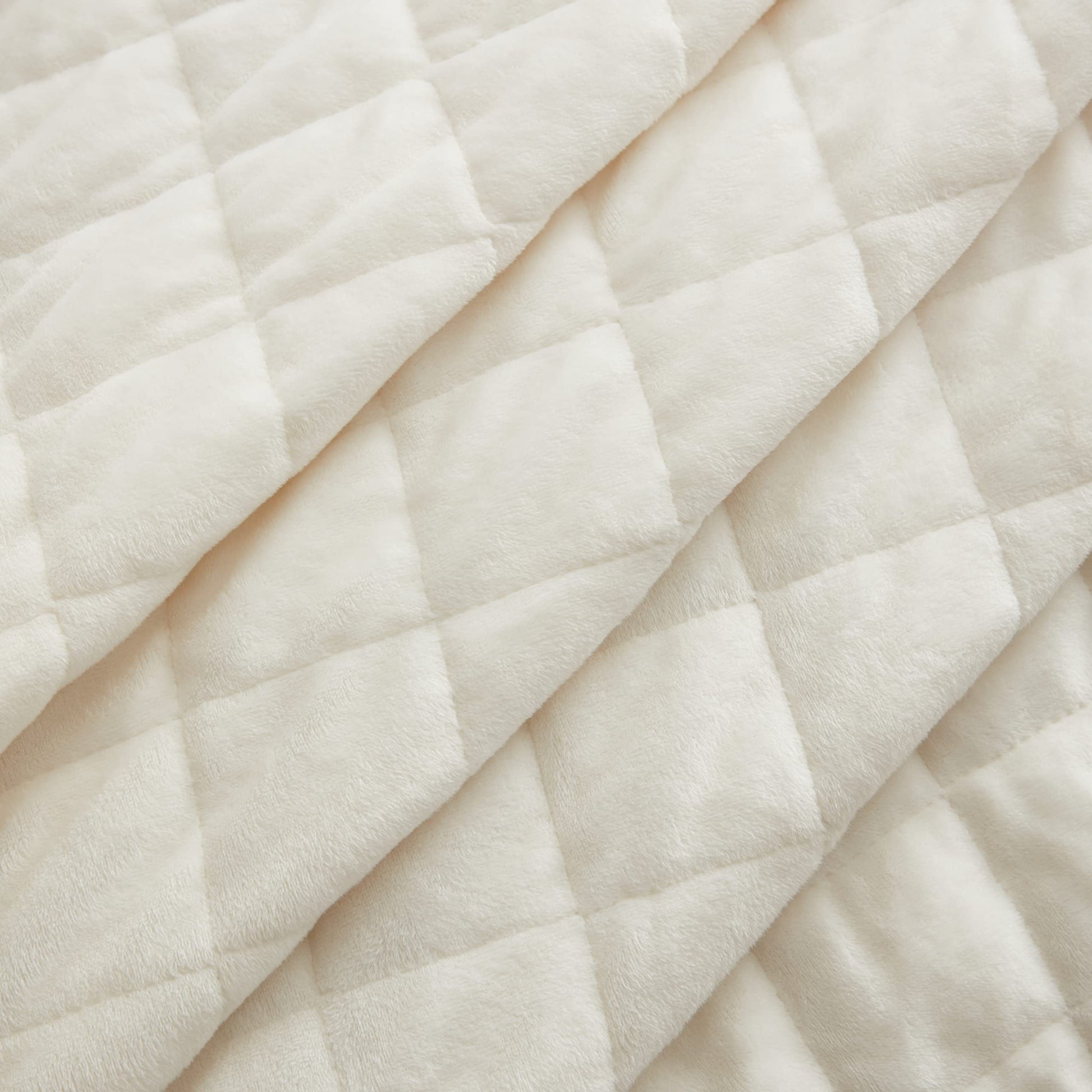 Quilt Sets Velvet with Trim Bedspread Cover Soft and Luxurious Oversized All Season Bedding with Pillow Shams, Queen Pack of 4), Ivory