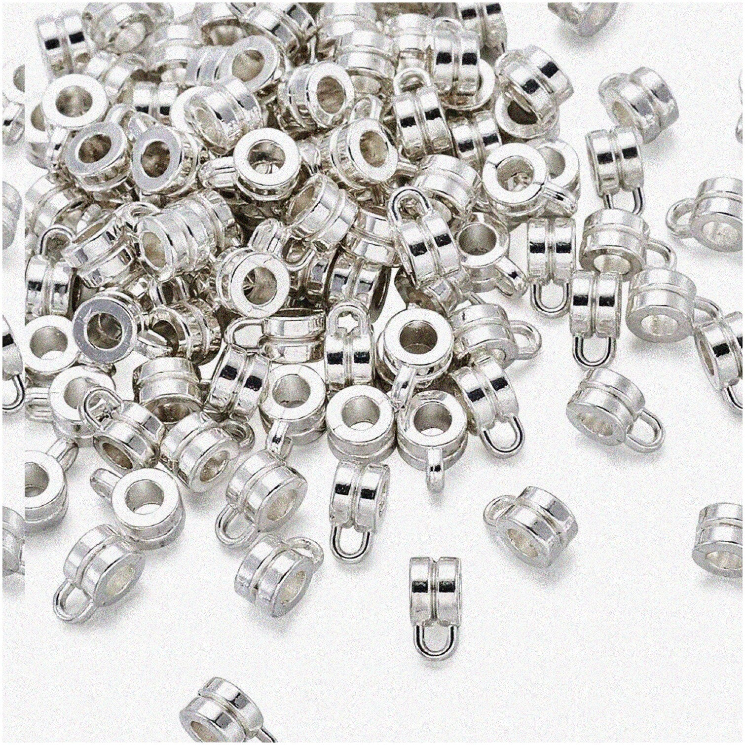 Enhance your jewelry and craft projects with a set of 200 silver column bail beads. Crafted from alloy and plated in five captivating colors, these beads offer a consistent, dazzling shine. Each bead features a unique pattern design that adds a retro accent to your creations. The 4mm hole allows for easy attachment of dangle pendants with jump rings and can also serve as spacing beads between other beads. Suitable for pendants, necklaces, bracelets, earrings, anklets, key chains, or room decorations, these versatile beads bring artistic allure and a touch of mystery to your designs. The generous quantity ensures ample supply for various projects, enabling you to craft numerous stunning pieces. Their sleek silver appearance and intricate design make them an ideal choice for adding elegance and character to your handmade jewelry and decorative items.