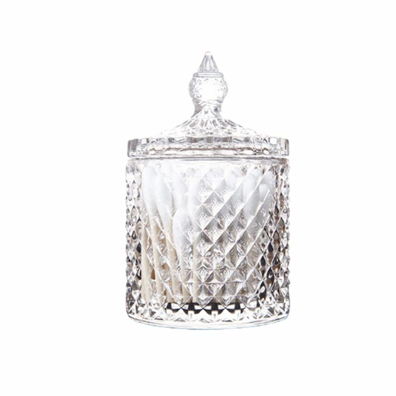 This decorative glass apothecary jar with lid offers a stylish and functional storage solution. Made from premium thick glass, it is solid and durable, featuring a wide mouth for easy access to items. Its modern European design adds a beautiful touch to any countertop or shelf. Ideal for organizing bathroom essentials such as Q-tips, cotton balls, swabs, cotton pads, and hair ties, it also serves as a charming container for storing cookies, sugar, flour, or flavor packets. The versatile design makes it suitable for separating tea, sweeteners, or candies, or simply as a decorative piece. Its elegant appearance enhances the aesthetic of any space while providing practical storage. Perfect for bathroom vanity organization or as a decorative accent, this glass jar combines functionality with a sleek, modern look.