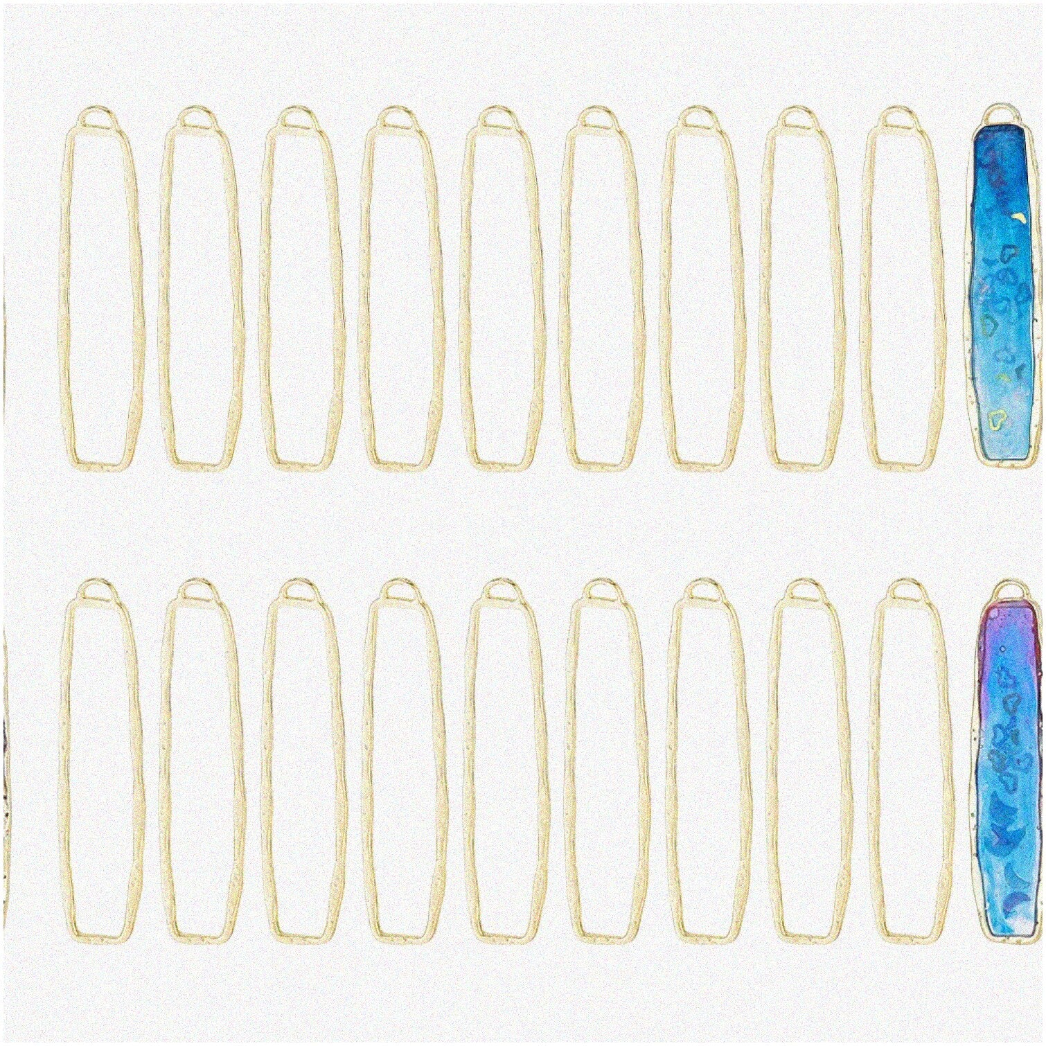 Create your own unique jewelry pieces with this set of 20 open back alloy bezels in a radiant golden finish. Each rectangular pendant measures approximately 60.5mm in length, 14mm in width, and 1.5mm thick, providing ample space for your creative designs. The pendants feature a hole size of 0.16x0.08 inches, making them easy to attach to chains, cords, or other findings. Designed with a sleek open back, these bezels are ideal for embedding pressed flowers, UV resin, or epoxy resin to craft personalized pendants. Packaged in a compact plastic container measuring 2.91x2.83x0.67 inches, this set offers a versatile selection for various DIY projects. Whether creating custom jewelry or decorative crafts, these stylish and durable bezels provide a perfect foundation for your artistic ideas. Let your imagination run wild and bring your creative visions to life with these elegant alloy pendants.