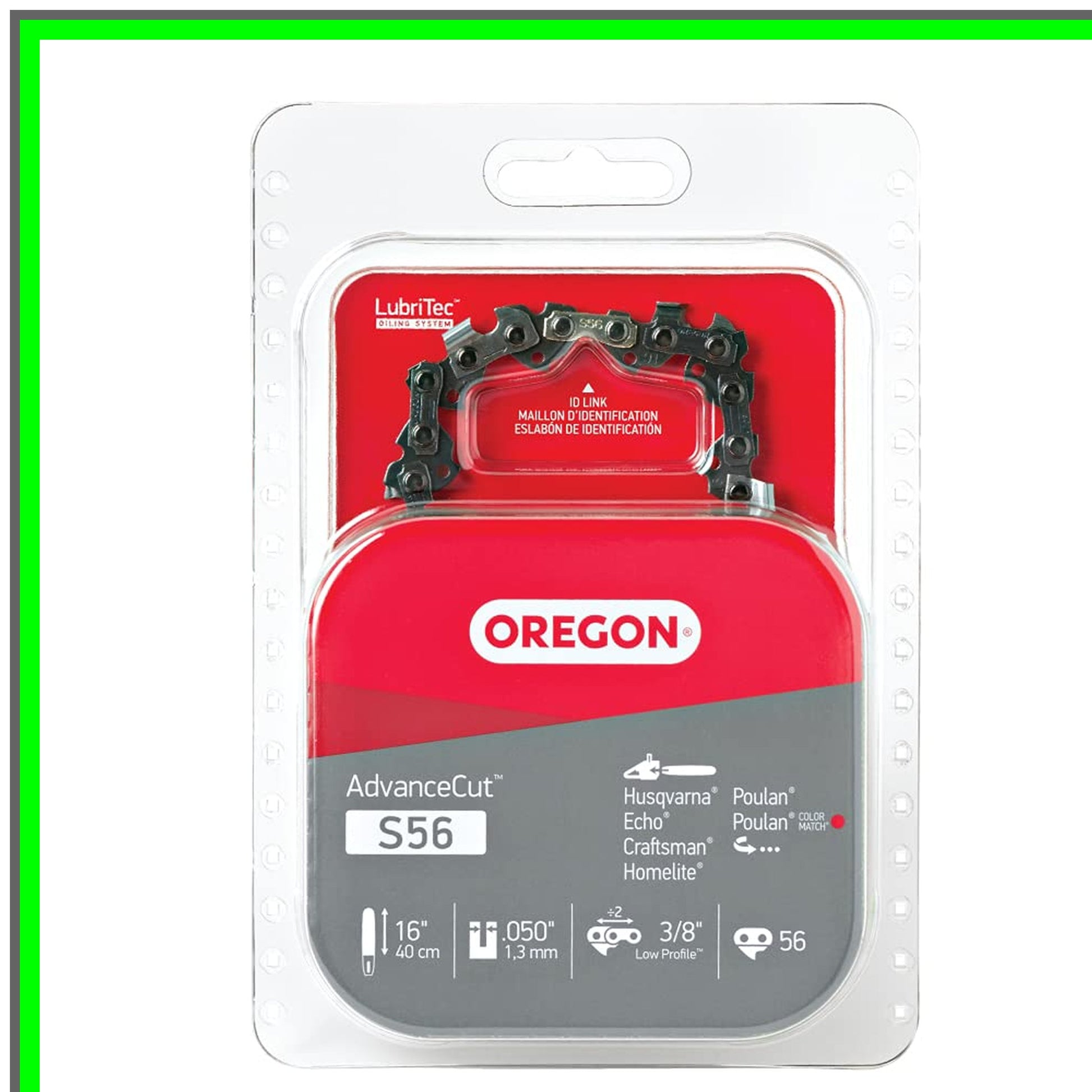 Introducing the ultimate solution for your cutting needs: a high-performance chainsaw chain designed to seamlessly fit a wide range of chainsaw brands and models. This versatile chain boasts a 3/8 inch pitch and a 0.050 inch (1.3 mm) gauge, featuring 56 drive links that ensure compatibility with numerous popular chainsaw models. Whether you own a chainsaw from renowned brands like Husqvarna, Makita, Homelite, or Poulan, this chain is engineered to deliver exceptional cutting efficiency. It is specifically designed for models such as the Husqvarna 136, 240E, and T540XP, as well as the Makita EA3201S35B and the Homelite UT10532. With its low-profile design, this chain is perfect for both professional and home users looking for precision and reliability.Safety is paramount, and this chainsaw chain meets the stringent kickback performance requirements of ANSI B175.1-2012 and CSA standard Z62.3, ensuring a safer cutting experience. The innovative Chamfer Chisel cutters and notched bumper drive link enhance chip flow and provide a smooth cutting action, making it ideal for various cutting tasks.The four-way symmetrical tie straps simplify the process of joining chain loops, allowing for quick and easy maintenance. Experience the difference with a chainsaw chain that not only meets but exceeds expectations in performance and safety. Upgrade your chainsaw today and enjoy the benefits of a reliable, high-quality cutting tool that is built to last. Perfect for both seasoned professionals and DIY enthusiasts, this chainsaw chain is your go-to choice for all your cutting projects.