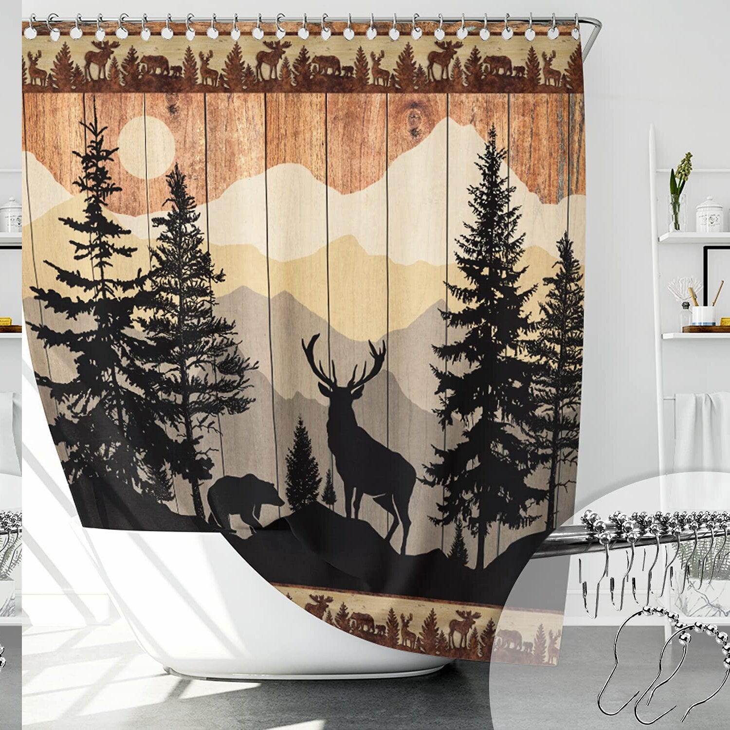 Transform your bathroom into a rustic retreat with this deer-themed shower curtain set. Measuring 72" x 72", it includes 12 hooks and metal rings for easy installation. The vibrant HD digital print showcases a hunting-inspired woodland scene, providing a fade-resistant design that maintains its vividness over time. Crafted from high-quality polyester fabric, this curtain offers durability and easy care—simply wash in warm or cold water and iron at low temperature to keep it looking pristine. Its versatile design makes it suitable for various spaces such as homes, RVs, apartments, hotels, or gyms, adding a touch of nature-inspired charm wherever used. Elevate your bathroom decor effortlessly with this farmhouse-style curtain, creating a cozy, rustic atmosphere. Customer satisfaction is a priority, and a full refund is available if expectations are not met, ensuring a confident purchase.