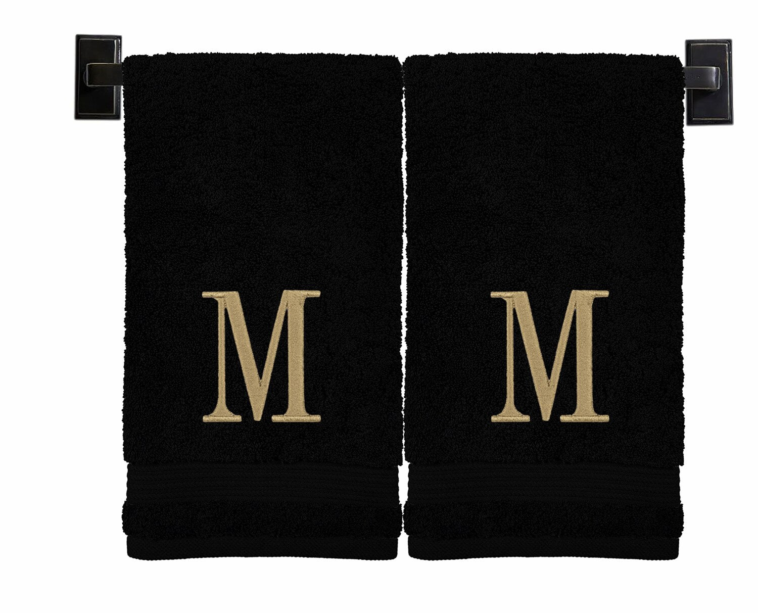 This set of two monogrammed hand towels is crafted from 100% Turkish cotton, offering exceptional softness and high water absorption. Each towel measures 16 x 27 inches and features a beautiful dobby design with reinforced seams and double stitching for durability. The towels are prewashed with no pesticides or processing, ensuring a natural feel. Personalize your towels with any letter, choosing from a variety of thread and towel colors, including black, white, beige, gold, gray, and navy blue. Each towel is embroidered at a Wisconsin-based studio, providing a polished, personalized touch. The towels are OEKO-TEX and ISO 9001 certified, reflecting quality and safety standards. Care is simple: machine wash with like colors, tumble dry low, and remove promptly. These decorative towels combine elegance and functionality, making them a stylish addition to any bathroom. Trust in their quality, backed by positive reviews and careful craftsmanship.