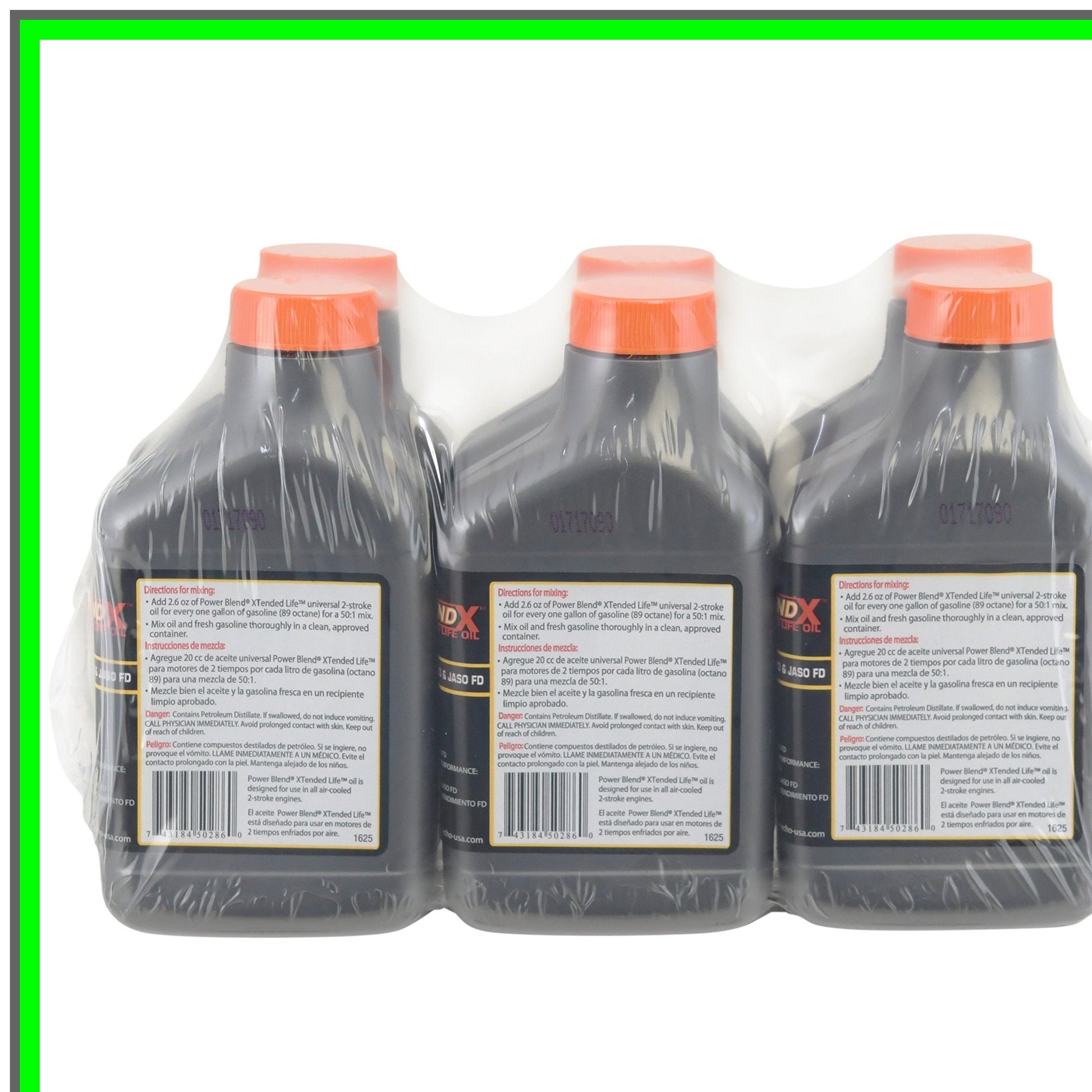 Introducing our premium 2-Stroke Oil Mix, designed for optimal performance in your outdoor power equipment. This semi-synthetic blend is engineered to meet the rigorous demands of air-cooled, 2-stroke engines, ensuring your tools run smoothly and efficiently. Each 2.5-gallon mix is formulated to a precise 50:1 ratio, making it the perfect choice for lawn mowers, chainsaws, trimmers, and other essential equipment.Our advanced oil blend not only meets but exceeds industry standards, including ISO-L-EGD and JASO M345/FD, guaranteeing exceptional quality and reliability. With superior cleaning properties, this oil minimizes exhaust port blockage, allowing your engine to maintain peak performance while reducing maintenance needs. Say goodbye to rust, wear, and corrosion, as our formula provides robust protection against these common issues, extending the life of your equipment.Additionally, our 2-Stroke Oil Mix features a built-in fuel stabilizer that significantly enhances fuel longevity, ensuring your engine runs smoothly even after extended periods of inactivity. Enjoy low smoke emissions, contributing to a cleaner environment while you work. Whether you're a professional landscaper or a weekend warrior, our 6-pack of 2-Stroke Oil Mix is the ideal solution for keeping your outdoor power tools in top condition. Experience the difference with our high-performance oil blend and unleash the full potential of your equipment. Trust in our commitment to quality and performance, and make every job easier and more efficient.