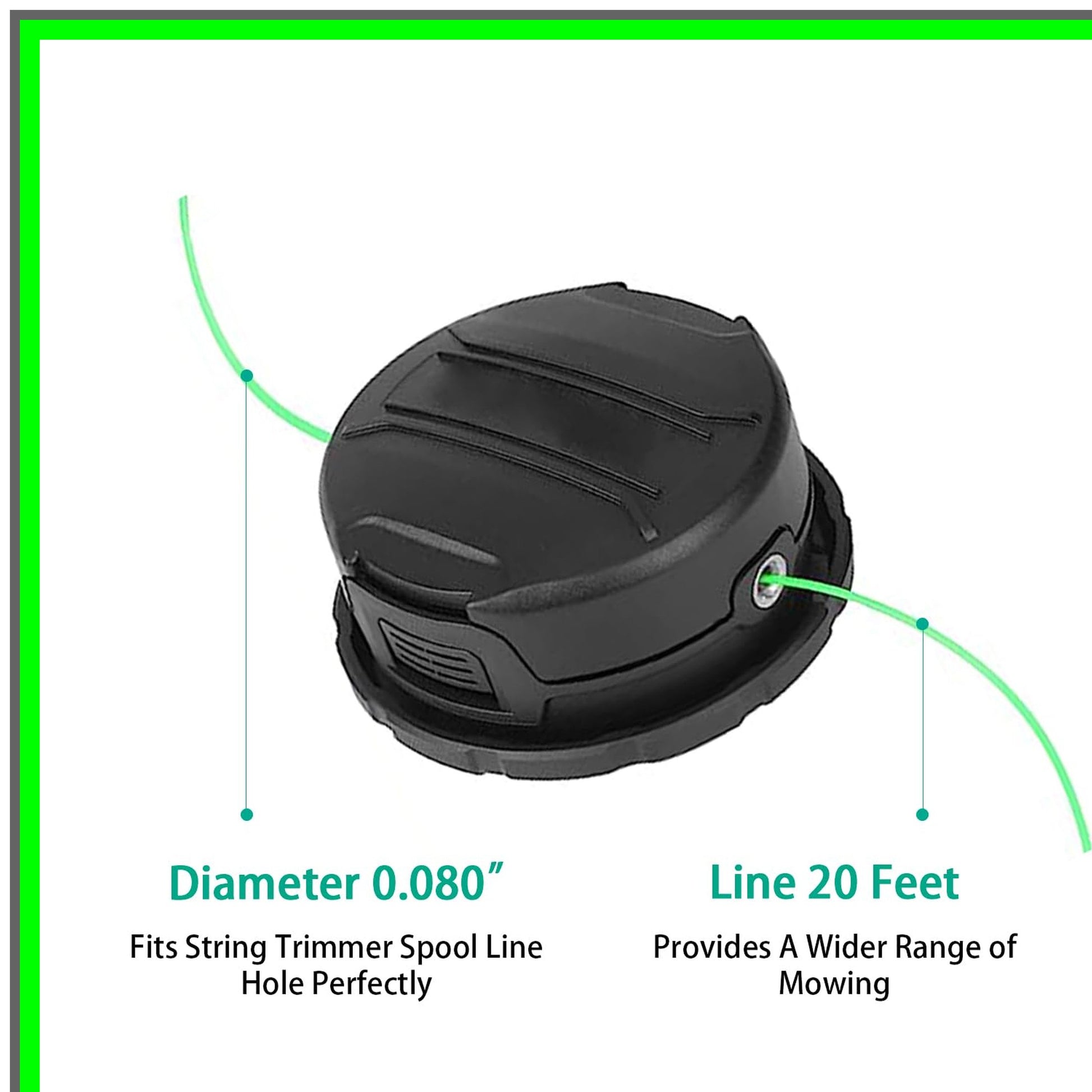 Replacement Trimmer Head and Spools for Cordless String Trimmers 20ft 0.080"