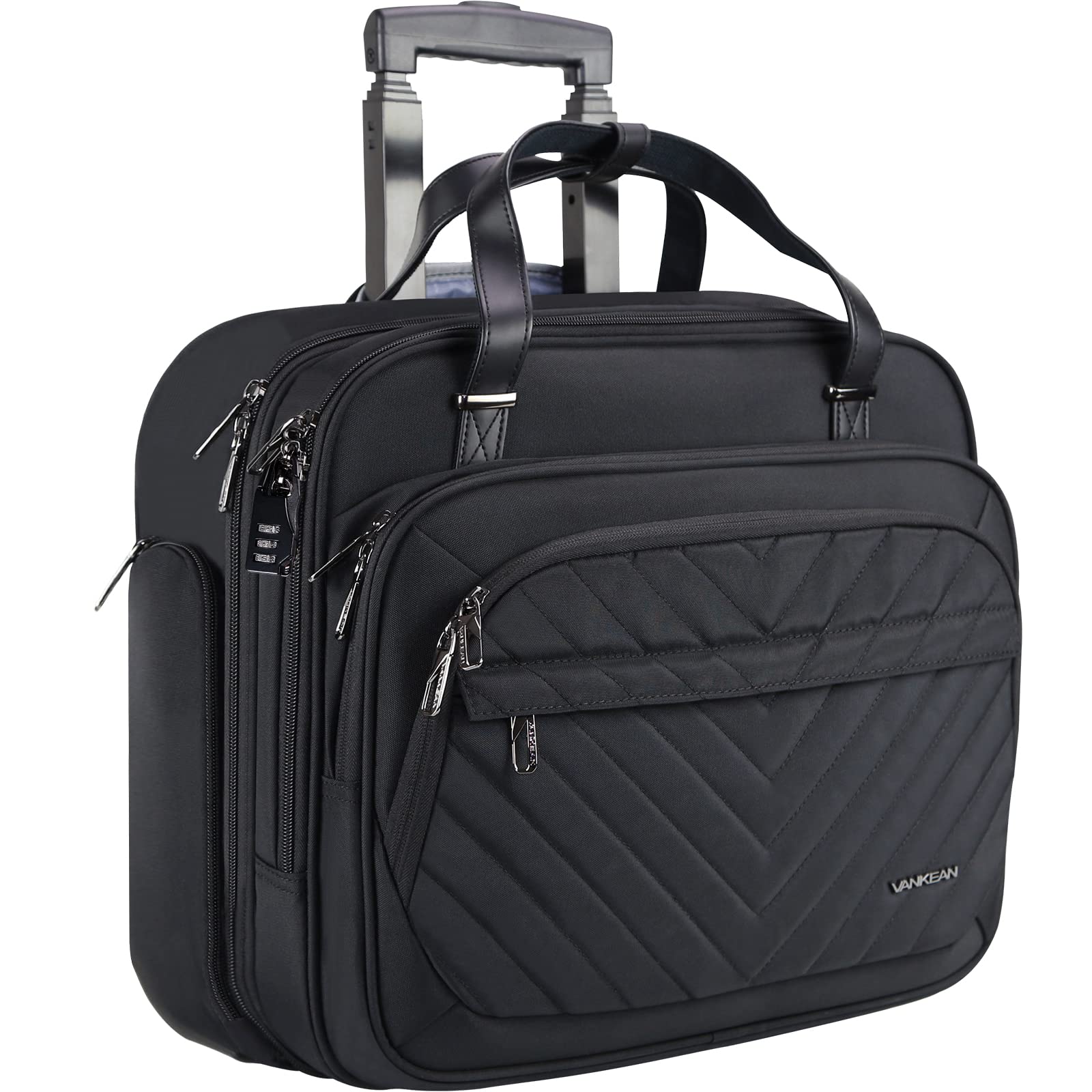 Rolling Laptop Case for Women,Premium Rolling Travel Luggage Bag Fits Up to 15.6 Inch LaptopCarry on BriefcaseWater-Proof Overnight Rolling Computer Bags with RFID Pockets