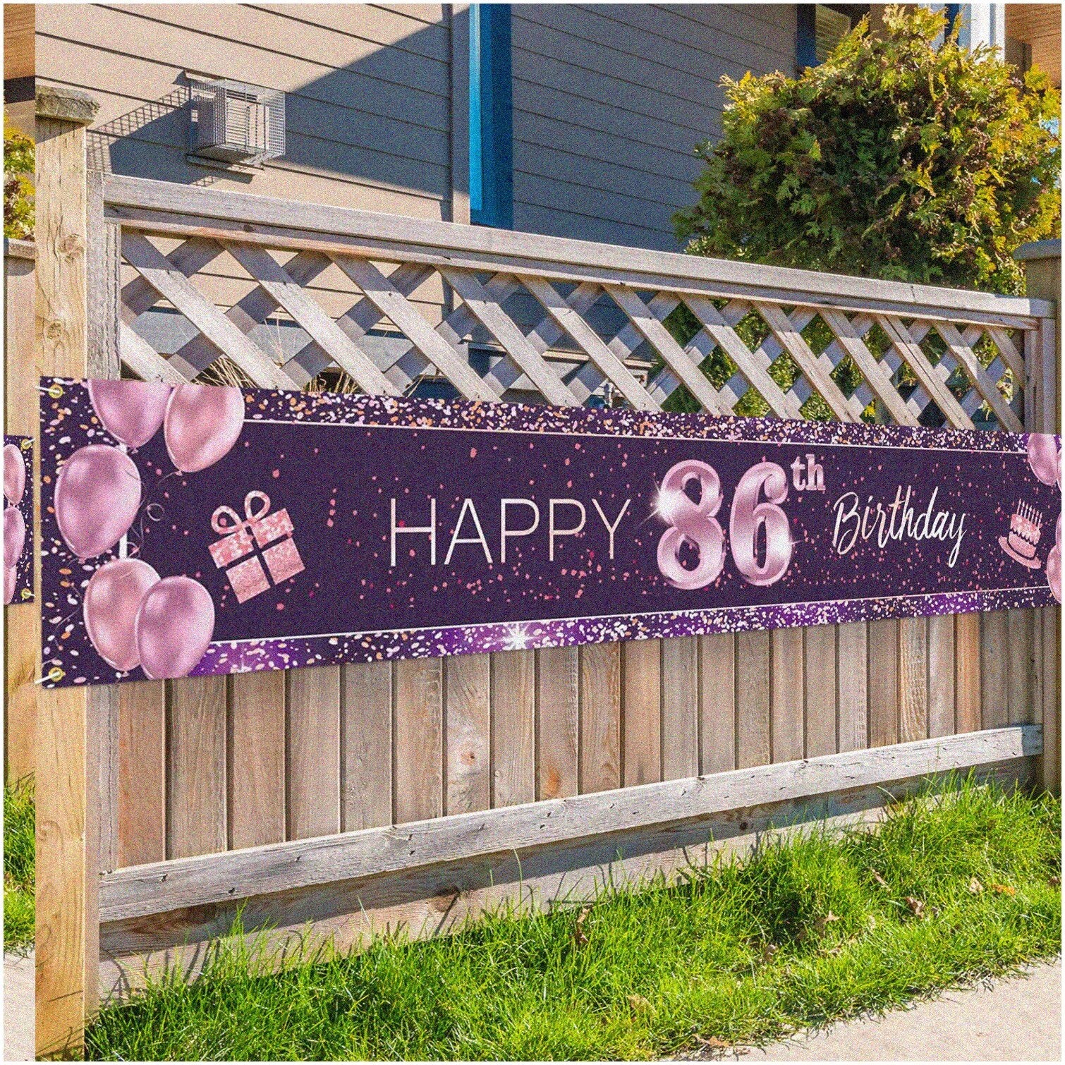 86th Birthday Backdrop Banner 9.8x1.6 ft Pink
