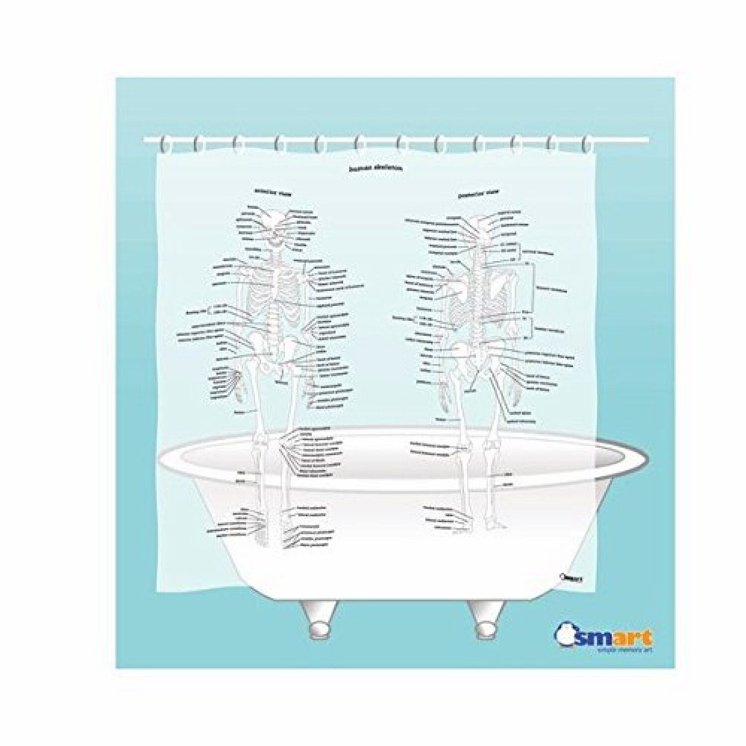 Learn what's inside while cleaning your outside with this Human Skeleton Shower Curtain. Measuring approximately 71" x 71", it features detailed illustrations of bones such as the manubrium, iliac bones, humerus, and other osseous structures. Designed to be both educational and stylish, this EVA vinyl curtain brings a fun, orthopedically inspired touch to your bathroom. Its vibrant, hand-screened colors add visual appeal, making it a unique addition to your space. Perfect for daily routines, it offers an engaging way to familiarize yourself with basic human anatomy. Whether you're brushing your teeth or taking a shower, this curtain provides a subtle opportunity to learn about the human skeleton effortlessly. Environmentally friendly and easy to clean, it transforms your bathroom from ordinary to entertaining. A great gift idea, it combines function with educational fun, encouraging curiosity and knowledge about the human body every day.