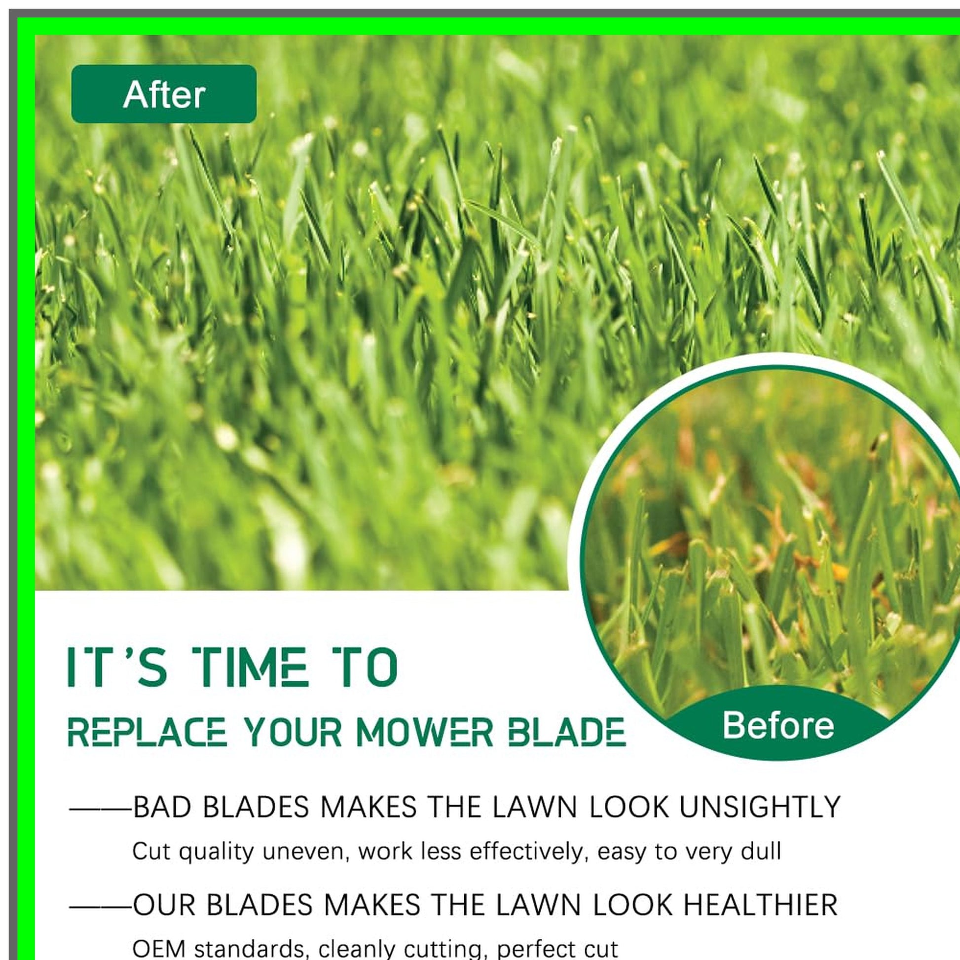 Elevate your lawn care routine with our premium 3 Blade Set, expertly designed for a precise fit with 50-inch mowers from leading brands like MTD, Cub Cadet, and Troy-Bilt. This high-performance replacement set is engineered to replace OEM numbers 942-05052A and 742-05052A, ensuring compatibility and reliability for your mowing needs.Crafted from durable, high-carbon steel, these blades deliver exceptional cutting power and longevity, making them ideal for tackling even the toughest grass and weeds. The sharp, aerodynamic design promotes efficient airflow, resulting in a clean, even cut that enhances the health and appearance of your lawn. Say goodbye to uneven patches and hello to a lush, manicured yard.Installation is a breeze with our user-friendly design, allowing you to quickly swap out your old blades and get back to mowing in no time. Whether you're a weekend warrior or a professional landscaper, this blade set is perfect for maintaining a pristine lawn throughout the season.With a focus on performance and durability, our 3 Blade Set is not just a replacement; it's an upgrade. Experience the difference in your mowing efficiency and enjoy the satisfaction of a beautifully maintained lawn. Invest in quality and reliability with our mower blade set, and watch your outdoor space thrive. Perfect for homeowners and lawn care enthusiasts alike, this essential tool will help you achieve the lush, green landscape you've always desired. Don’t settle for less—choose our 3 Blade Set for a superior mowing experience!