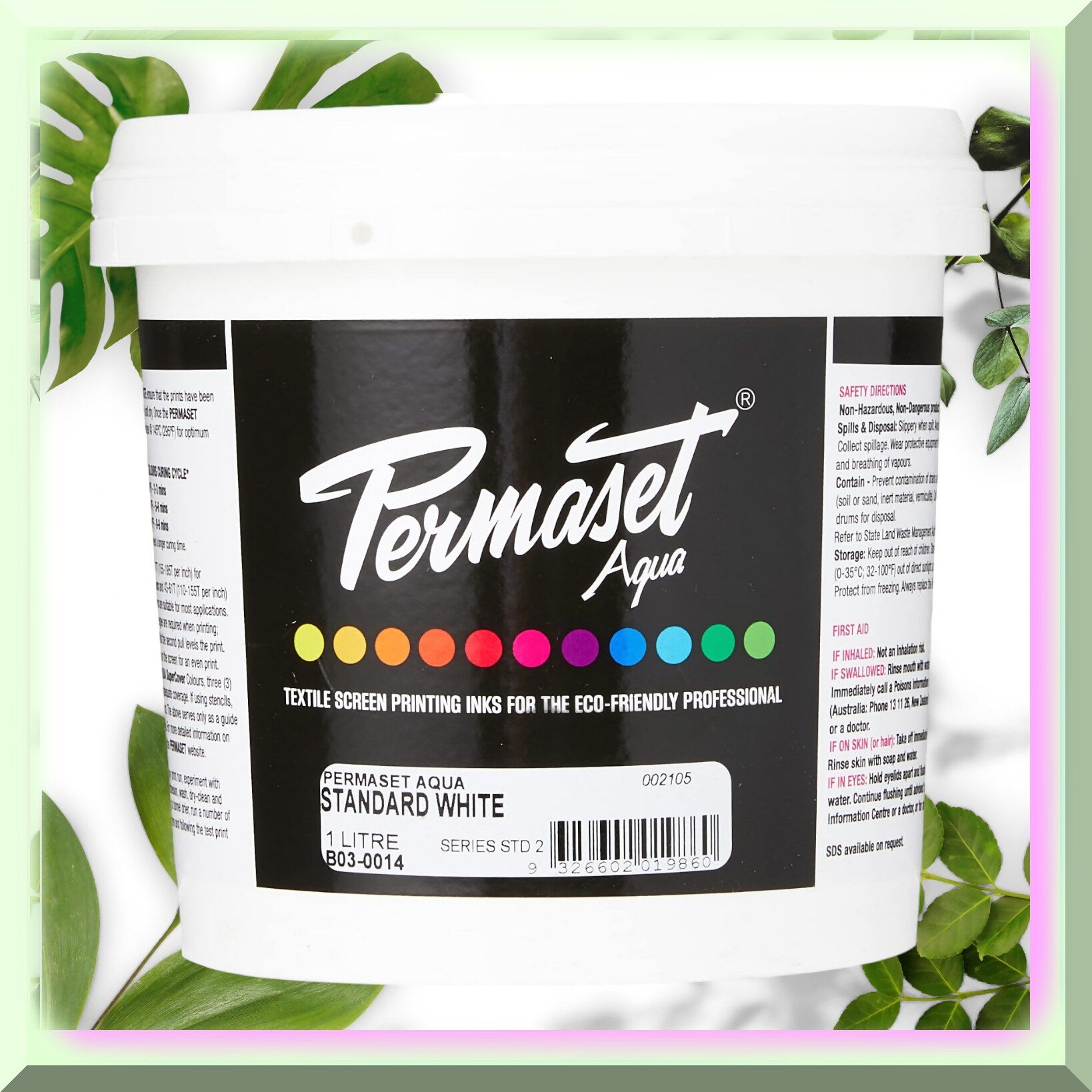 Aqua Fabric Standard Cover Screenprinting Inks in White come in a 1-liter container. These inks are 100% solvent-free and water-based, offering an environmentally friendly option for screen printing. They provide unsurpassed softness and durability, maintaining their quality through rub, wash, and dry cleaning processes. The inks are ready to use straight from the container, requiring no additional additives. Suitable for a wide range of fabrics, including cotton, polyester, silk, and most synthetics, they are versatile for various projects. The low odor formulation makes them suitable for different working environments. Designed to deliver high-quality results, these inks ensure vibrant, long-lasting prints with a soft feel. Their environmentally conscious composition and ease of use make them an excellent choice for screen printing on multiple fabric types.
