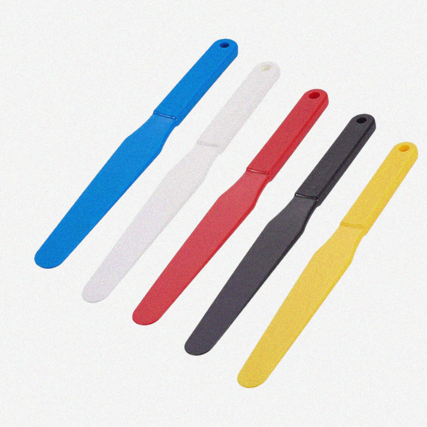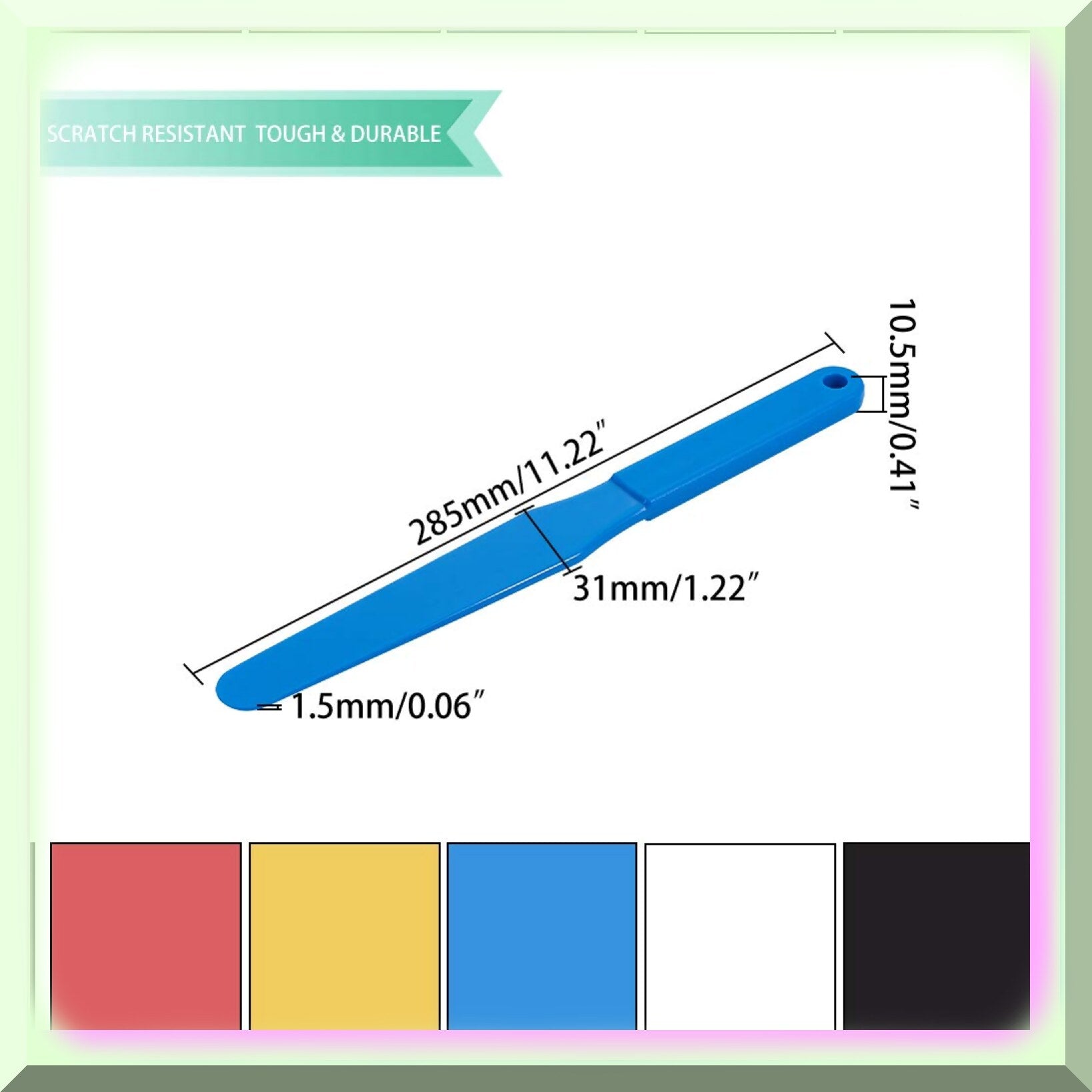 This set includes five plastic spatulas, each measuring 1.2 inches in width and 11.2 inches in length. Made from durable polypropylene, these spatulas are tough yet flexible, resistant to ink and paint. The round-edged head design prevents damage to mesh during use, while the smooth surface allows for easy cleaning without residual ink. Ideal for screen printing, these tools offer precise control when scooping and spreading ink. The package features a variety of colors, making it easy to organize and identify tools during projects. Each spatula is designed to be functional and easy to handle, ensuring efficient and clean application of ink or goop. Suitable for both professional and hobbyist use, these versatile tools help achieve high-quality screen printing results. The package includes five different color plastic spatulas, each approximately 31mm wide.