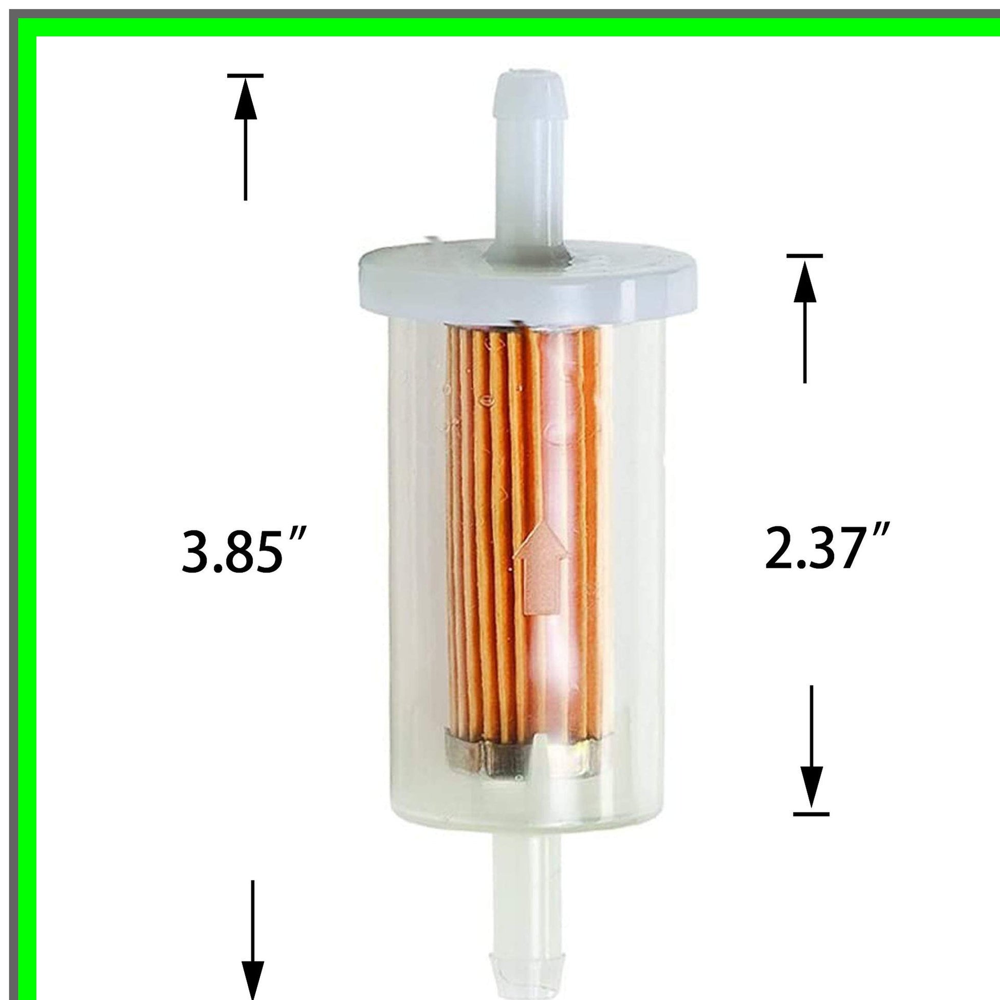 Introducing our premium pack of two 4-inch x 1-1/8-inch fuel filters, expertly designed to enhance the performance of your lawn mower and tractor. These high-quality filters are compatible with popular models from Troy-Bilt, MTD, and John Deere, including the D100, D105, and D110 series. Crafted for durability and efficiency, our fuel filters effectively trap dirt, debris, and contaminants, ensuring that your engine runs smoothly and efficiently. By maintaining a clean fuel system, these filters help extend the life of your equipment, reduce maintenance costs, and improve overall performance. Installation is a breeze, making it easy for both seasoned professionals and DIY enthusiasts to replace old or clogged filters. With a perfect fit for various lawn mower models, you can trust that these filters will provide optimal filtration and protection for your engine.Whether you're tackling a small residential lawn or managing a larger property, our fuel filters are essential for keeping your machinery in top condition. Don't compromise on quality; choose our reliable fuel filters to ensure your lawn mower operates at peak performance. Invest in your equipment's longevity and efficiency with this essential maintenance product. Order your pack today and experience the difference in performance and reliability that our fuel filters bring to your lawn care routine!