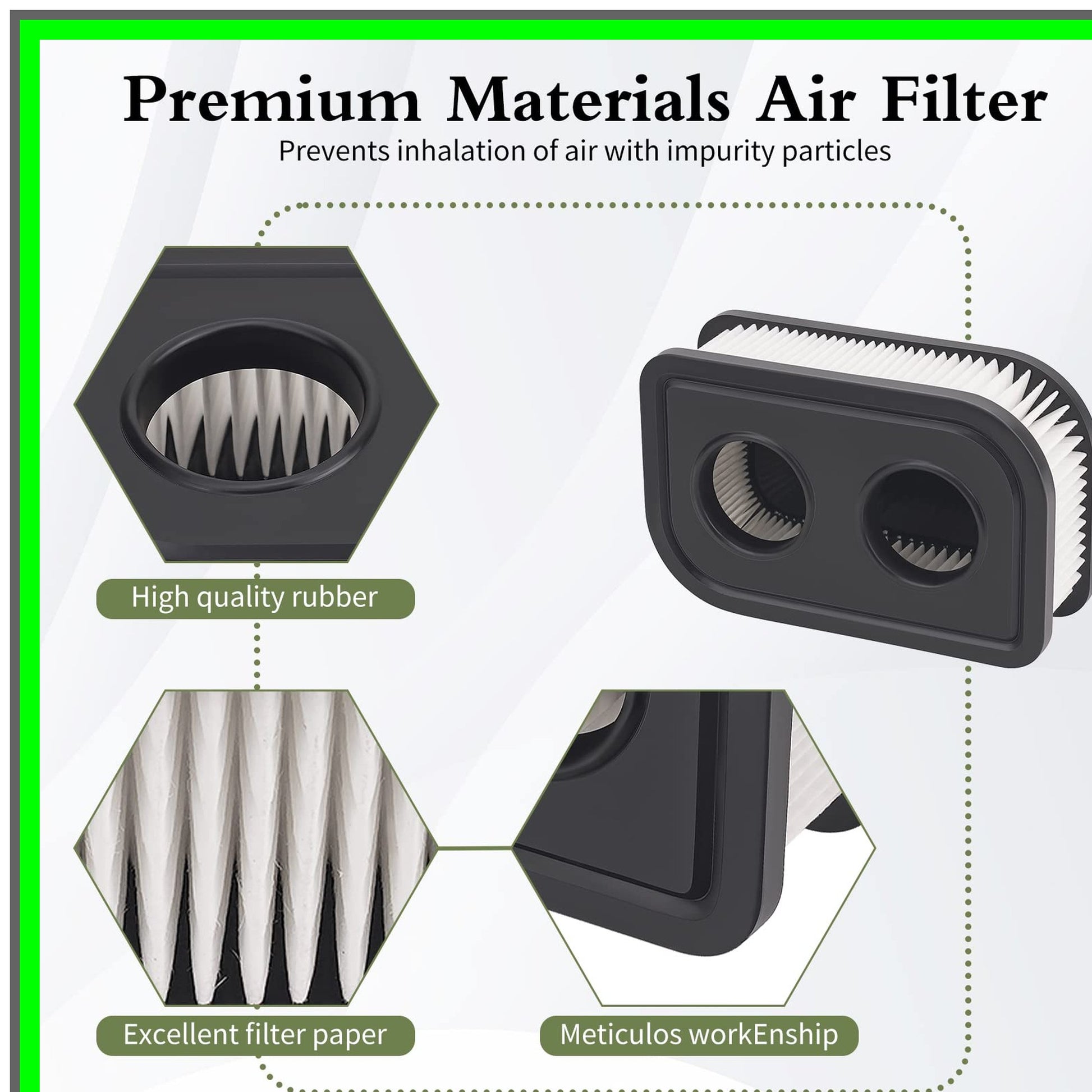 Revitalize your lawn care routine with our premium Lawn Mower Air Filter, designed to enhance the performance and longevity of your mower. Crafted with precision, this air filter is a perfect fit for a wide range of lawn mower models, ensuring optimal airflow and engine efficiency. Engineered to meet or exceed OEM specifications, this air filter is compatible with popular brands and models, including the 500, 550E, 625E, and many more. With part numbers such as 593260, 798339, and 334404, you can trust that this filter will seamlessly replace your old, worn-out component. Our air filter is made from high-quality materials that effectively trap dirt, dust, and debris, preventing them from entering your engine. This not only protects your mower but also improves fuel efficiency, allowing you to tackle your lawn care tasks with ease. Whether you own a push mower, walk-behind mower, or a riding mower, this versatile air filter is an essential addition to your maintenance toolkit.Each package includes two air filters, providing you with a convenient backup to ensure your mower runs smoothly all season long. Easy to install, you can replace your old filter in minutes, getting you back to mowing without hassle.Donβt compromise on the health of your lawn mower. Invest in our Lawn Mower Air Filter today and experience the difference in performance and reliability. If you have any questions or need assistance, our dedicated customer service team is here to help. Keep your mower running at its best and enjoy a beautifully manicured lawn with our top-quality air filter!