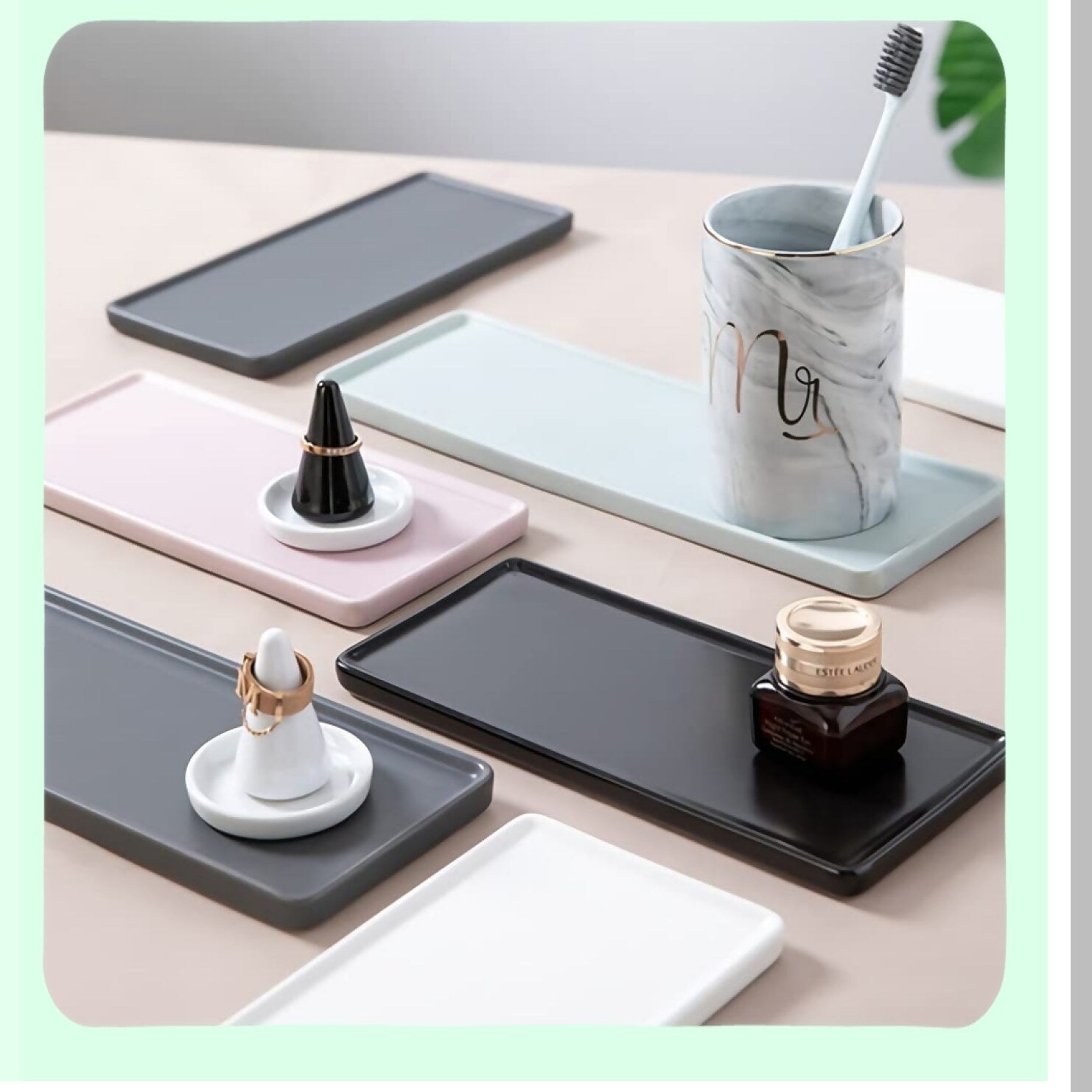 This ceramic tray measures 10.4" x 3.5" x 0.39", offering a sturdy and durable surface that is smooth and easy to clean. Its compact size makes it ideal for saving space in various areas. The multi-purpose design allows it to serve as a display tray for perfume, shampoo, toothbrushes, lotion bottles, cosmetics, ornaments, jewelry, watches, and smartphones. It can also function as a serving tray for food, drinks, and coffee. The simple white finish easily complements different furniture styles, making it suitable for use in bathrooms, vanity countertops, wash basins, bedside tables, and kitchens. Its elegant appearance makes it a versatile gift for loved ones, family, or friends during festivals or special occasions. This ceramic tray combines practicality with style, providing a functional and attractive addition to any space.